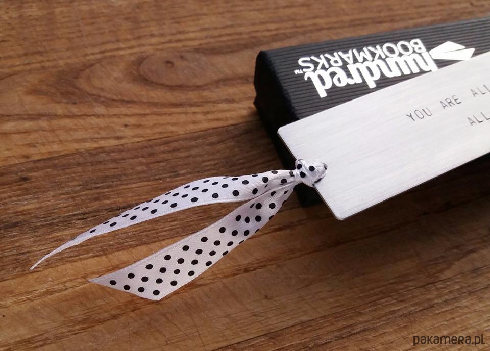 Opakowanie: ozdobne pudełko z kokardką i wytłaczanym logo marki Hundred Bookmarks™