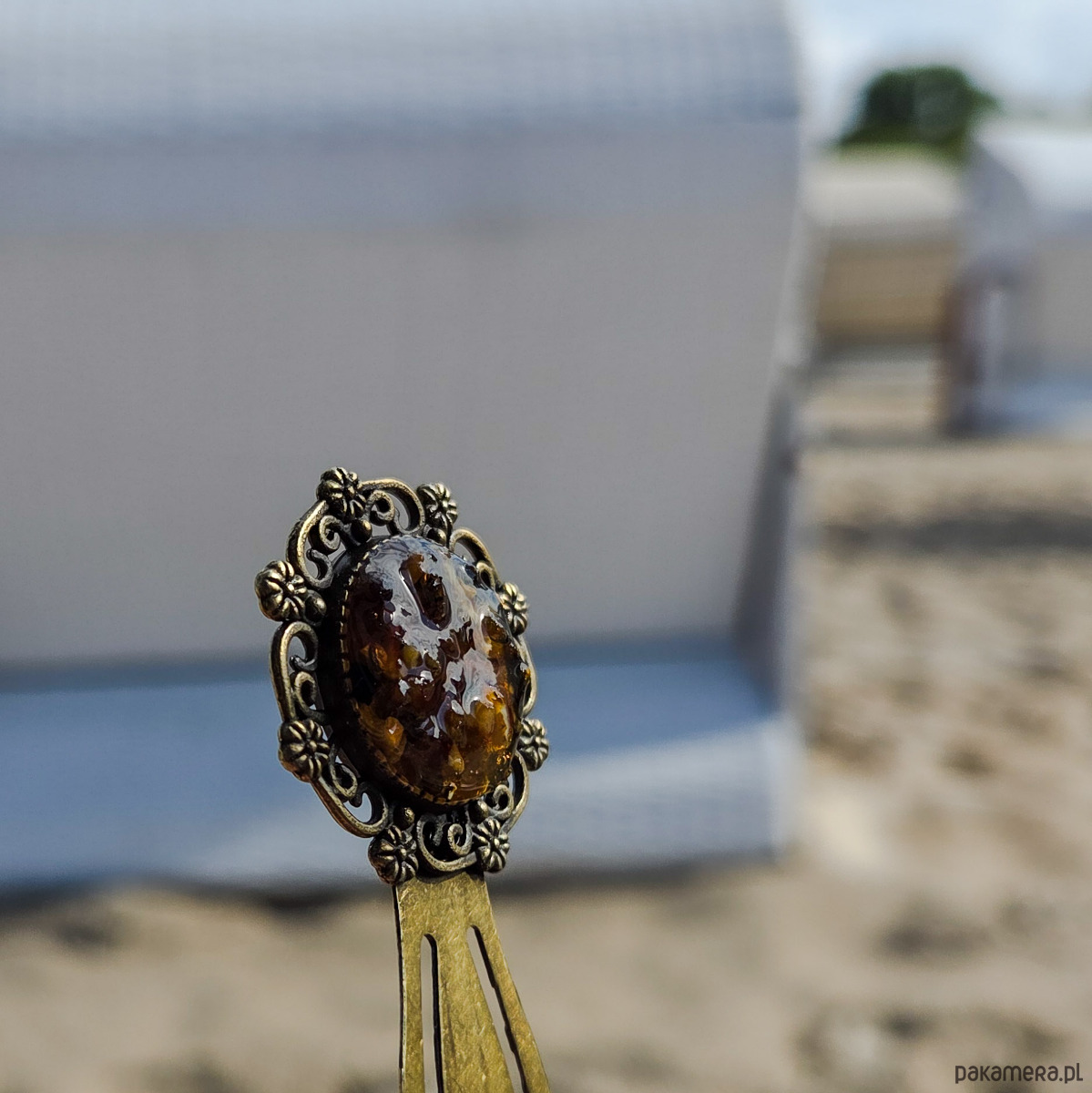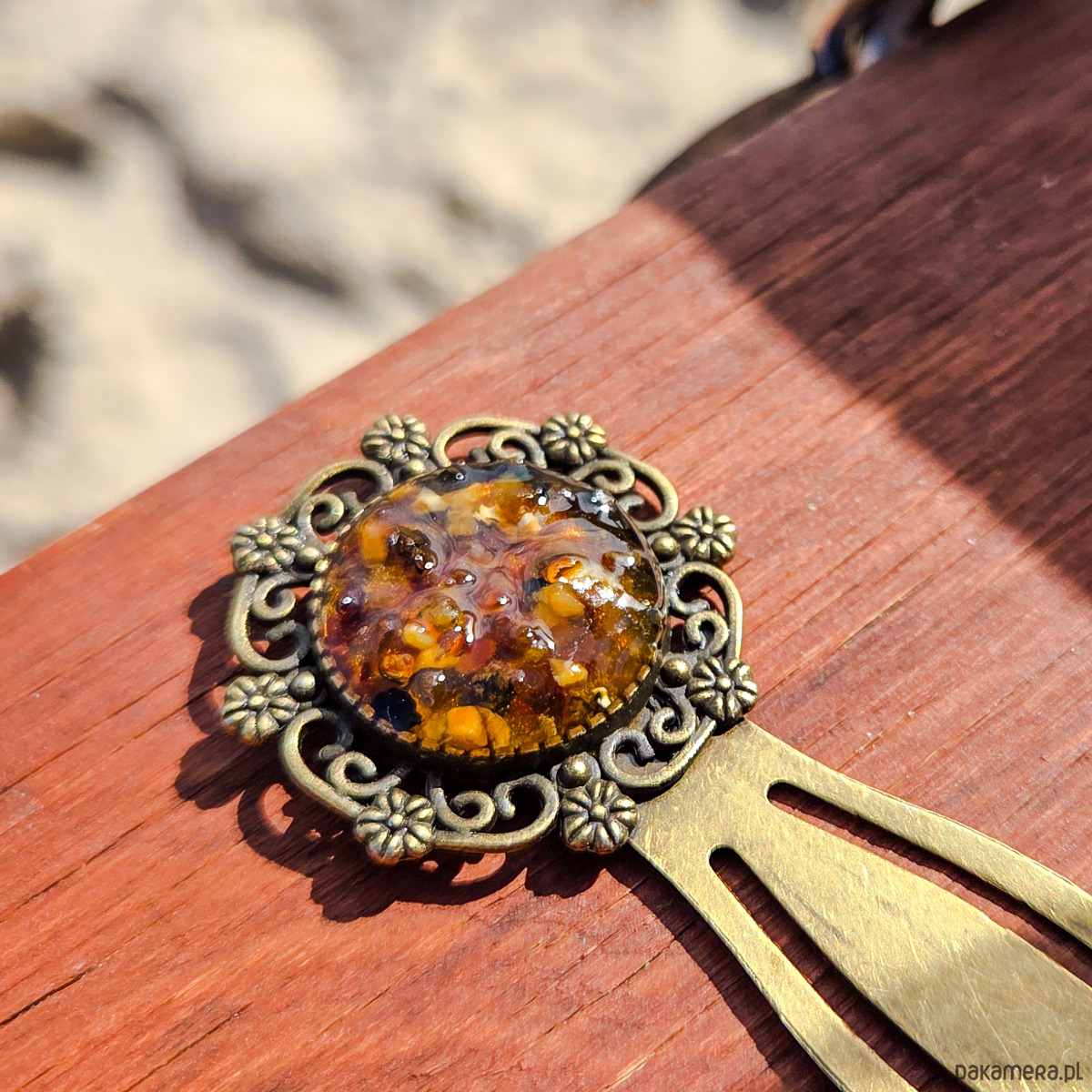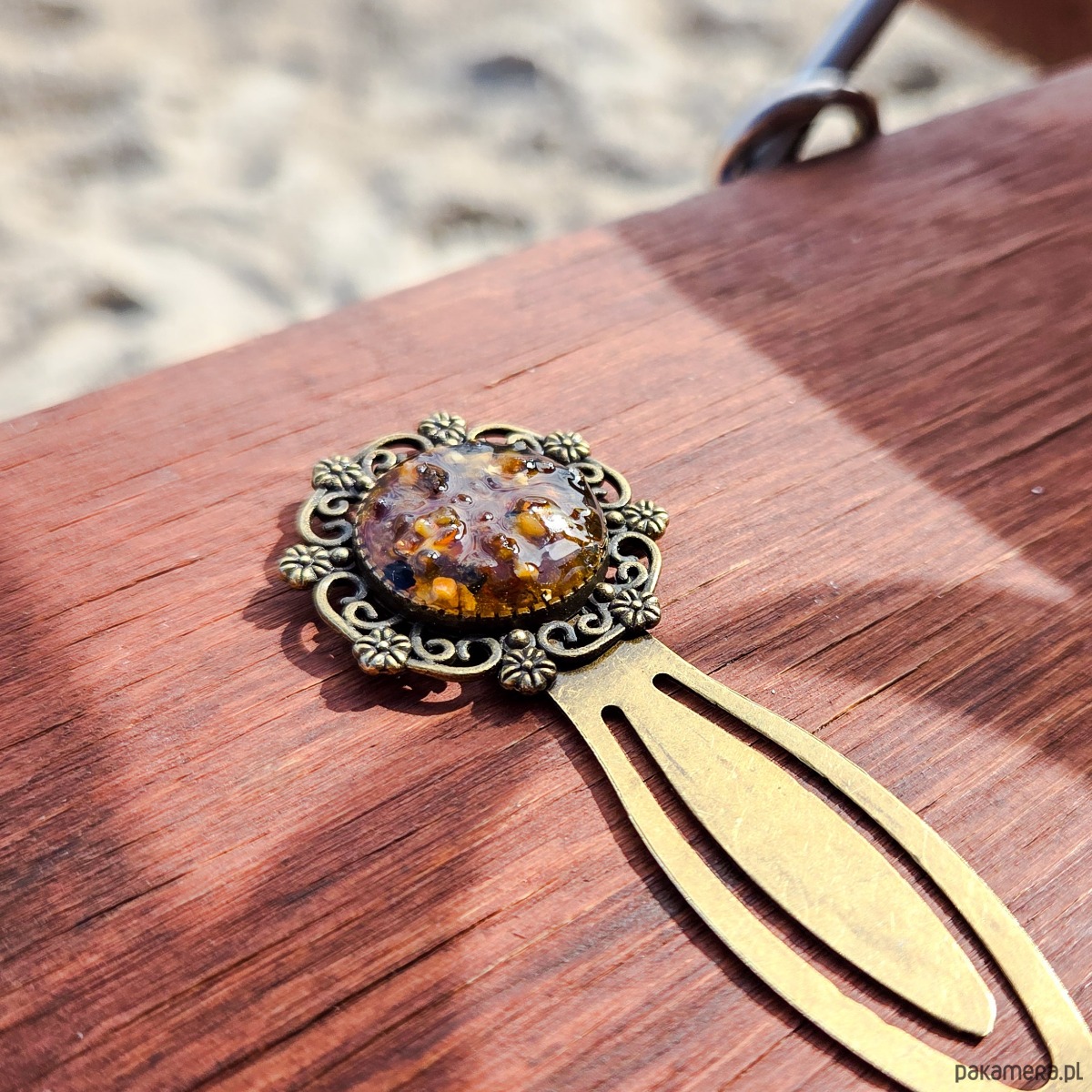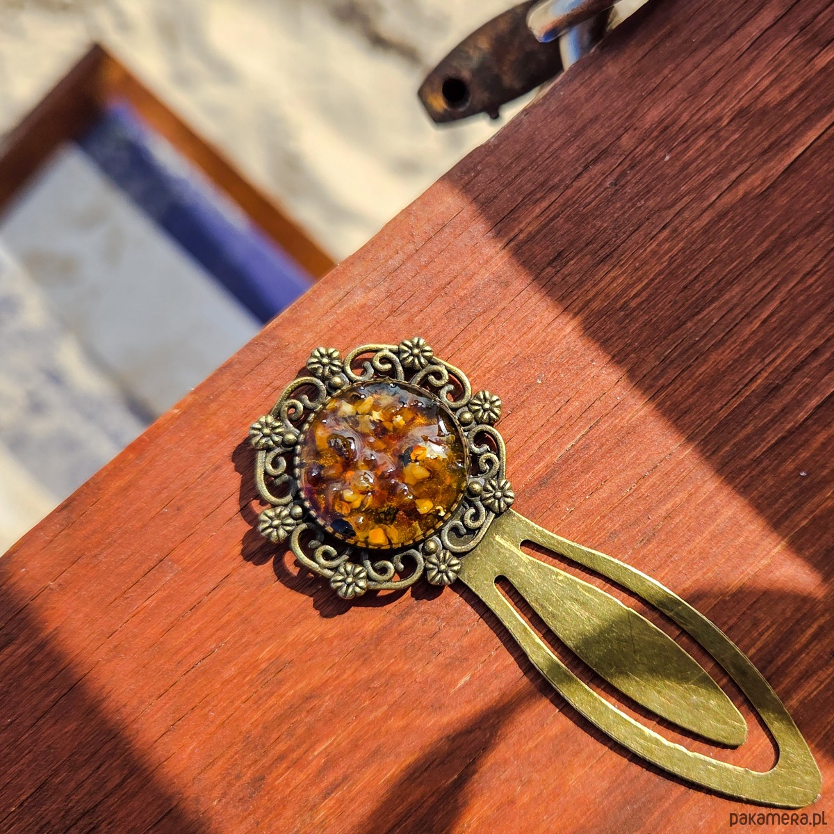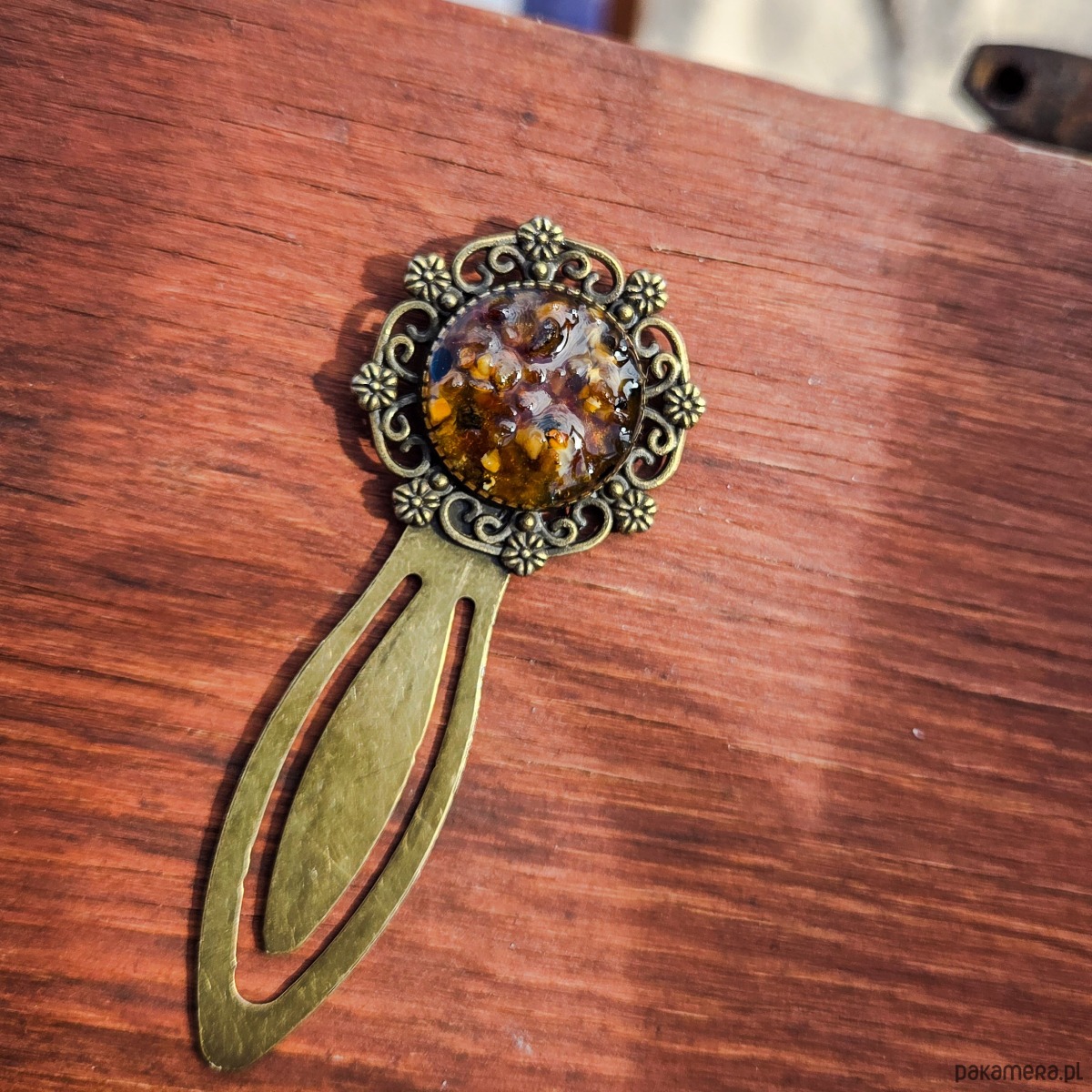 Zakładka z bursztynem zatopionym w żywicy epoksydowej.