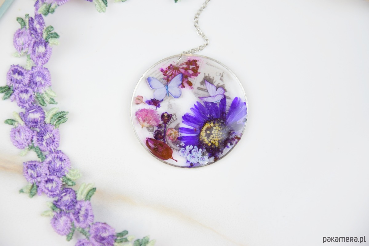 – Żywiczna zawieszka z suszonymi kwiatami (3,5 cm)