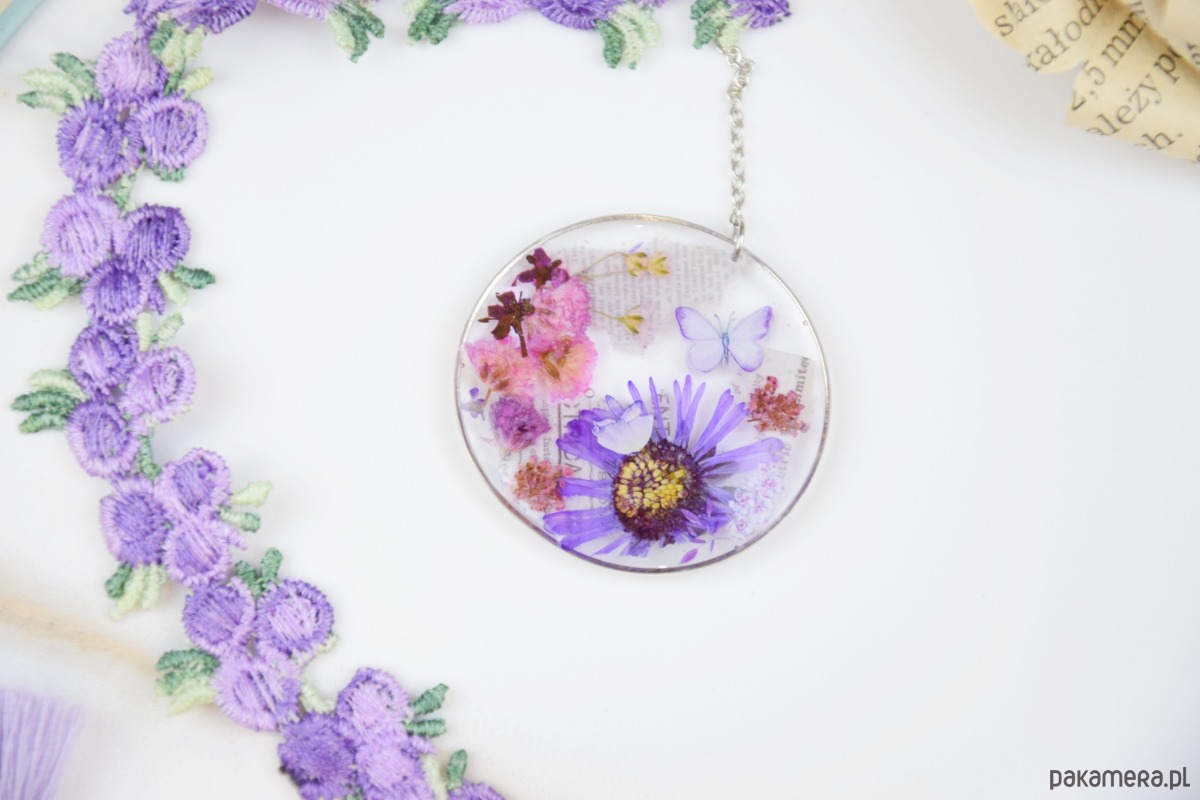 – Żywiczna zawieszka z suszonymi kwiatami (3,5 cm)