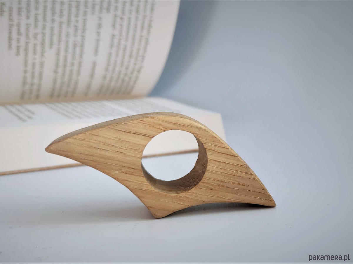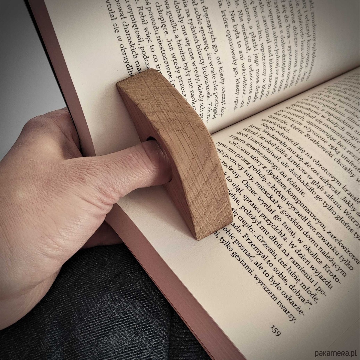 Mały drewniany pomocnik dla każdego książkoholika. Przydatny zwłaszcza w jesienno-zimowe wieczory, kiedy najchętniej jak największą część ciała pozostawilibyśmy pod kocem.... Przetestowany na własnym... palcu!