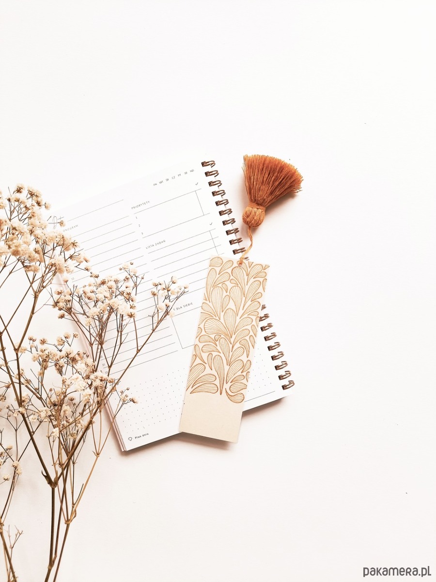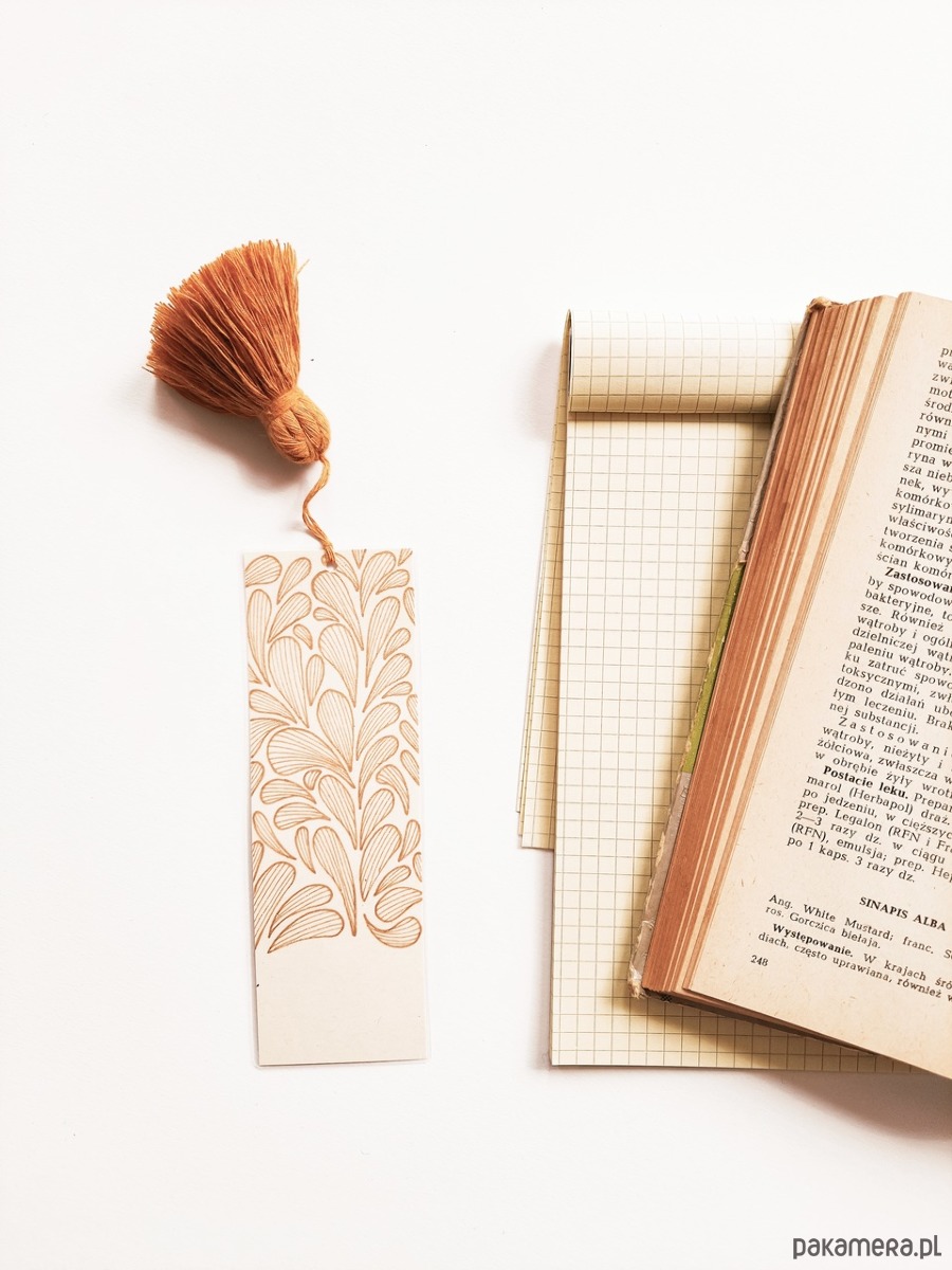 Ręcznie rysowana zakładka do książki z motywem roślinnym.