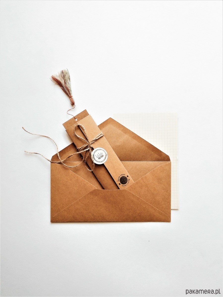 Rękodzieło starannie pakowane w papier ekologiczny wyprodukowany z makulatury, przewiązany sznurkiem jutowym.