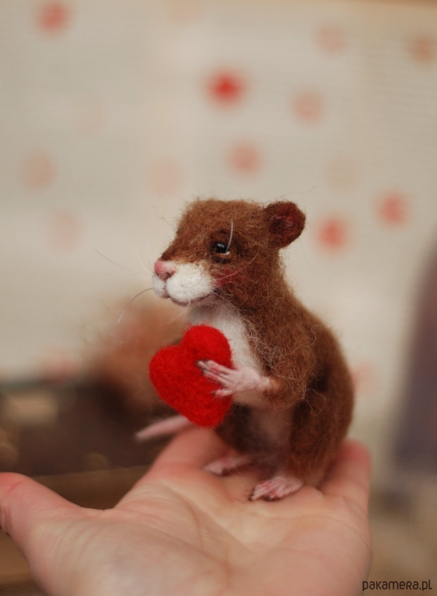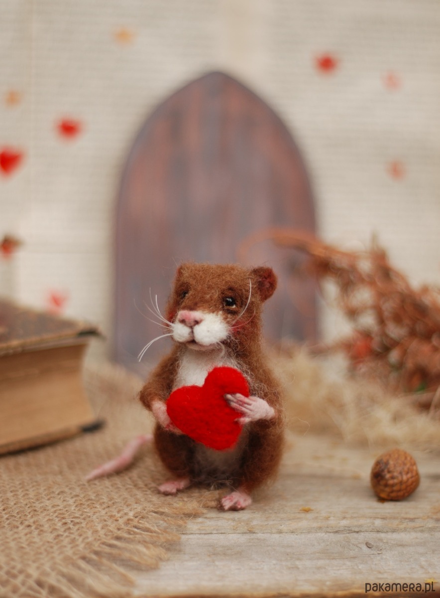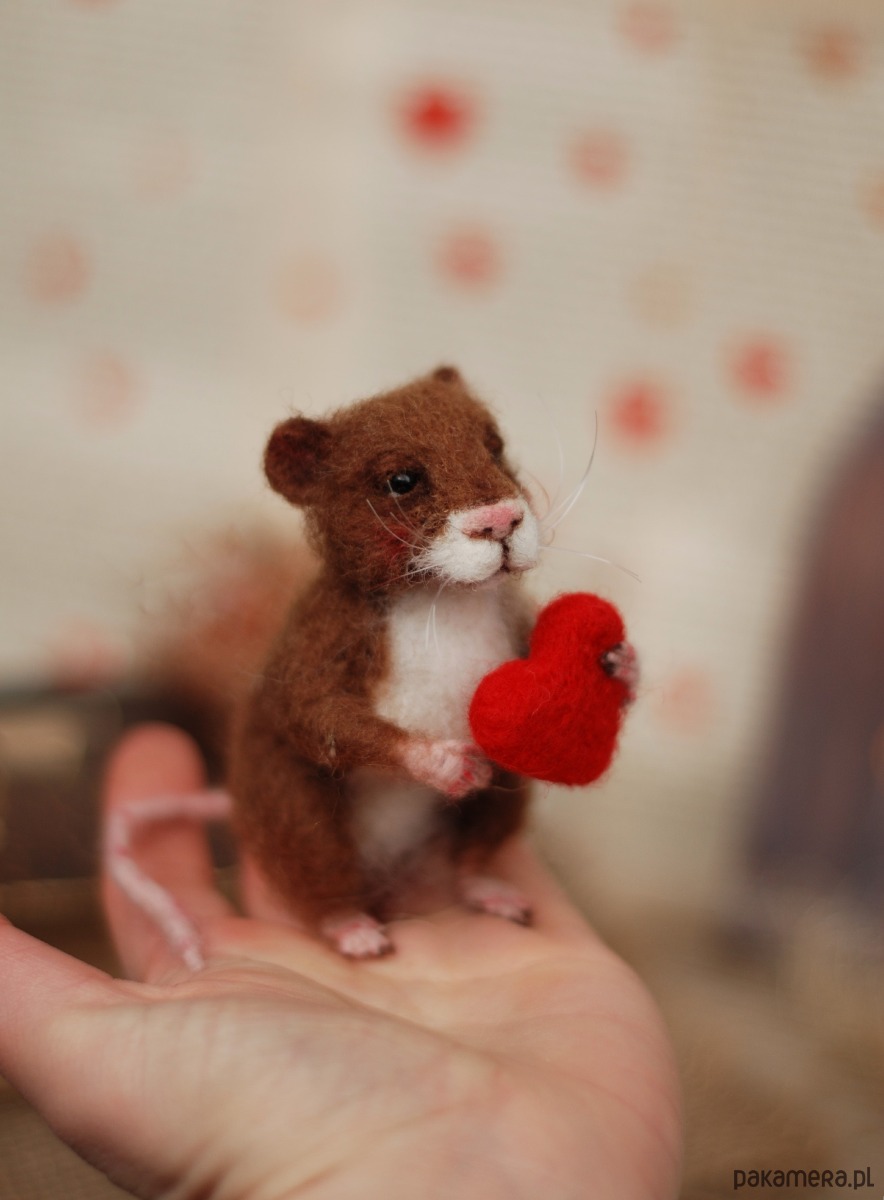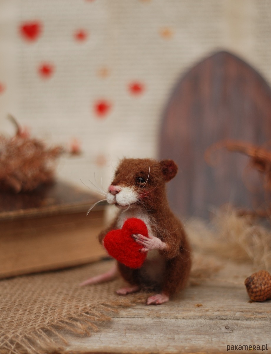 Myszka wykonana metodą filcowania na sucho z wełny merynos.