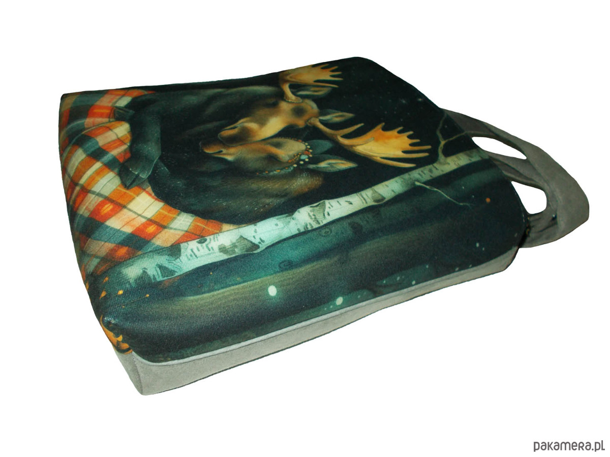 Autorska torba z usztywnionego eko zamszu, zapinana na zamek. Przód z weluru tapicerskiego. Pasek regulowany. Tył w kolorze paska (szary). Torba trzyma fason. Wewnątrz dwie kieszenie - jedna na zamek, druga z miejscem na telefon i coś jeszcze. W szwach wypustka. Denko poszerzone. szerokość 32cm wysokość 30cm plus denko 8cm