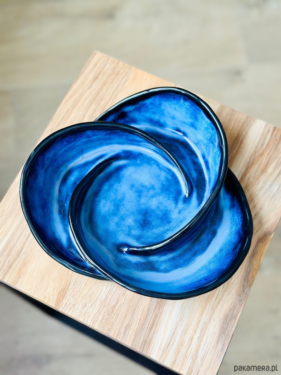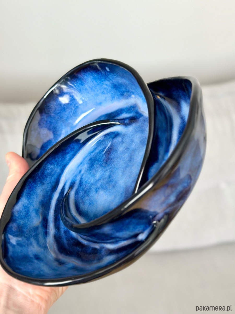 Powierzchnia miseczki pokryta jest szkliwem w odcieniach granatu, kobaltu i błękitu, inspirowanych zimowym niebem, gwiazdami i aurorą. Błyszczące szkliwo podkreśla kolory i nadaje całości wyrazisty, nowoczesny charakter.