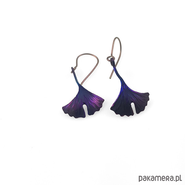 Kolczyki wykonane w całości z tytanu. Kolczyki są bardzo lekkie i nieuczulające. Długość listka 4,0 cm - z zawieszką 5,5 cm -i szerokość 1,6 cm.