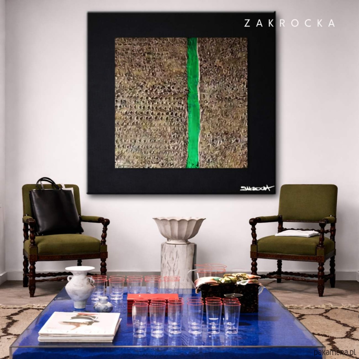 ZAKROCKA Duży obraz 120x120cm strukturalny z czranym obramowaniem