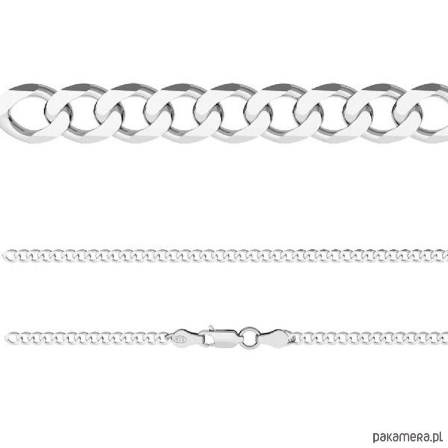 Naszyjnik męski SEROTONINA, wykonany w całości ze srebra najwyższej próby 925. Łańcuszek typu pancerka o szerokości ~3 mm i długości 55 cm.