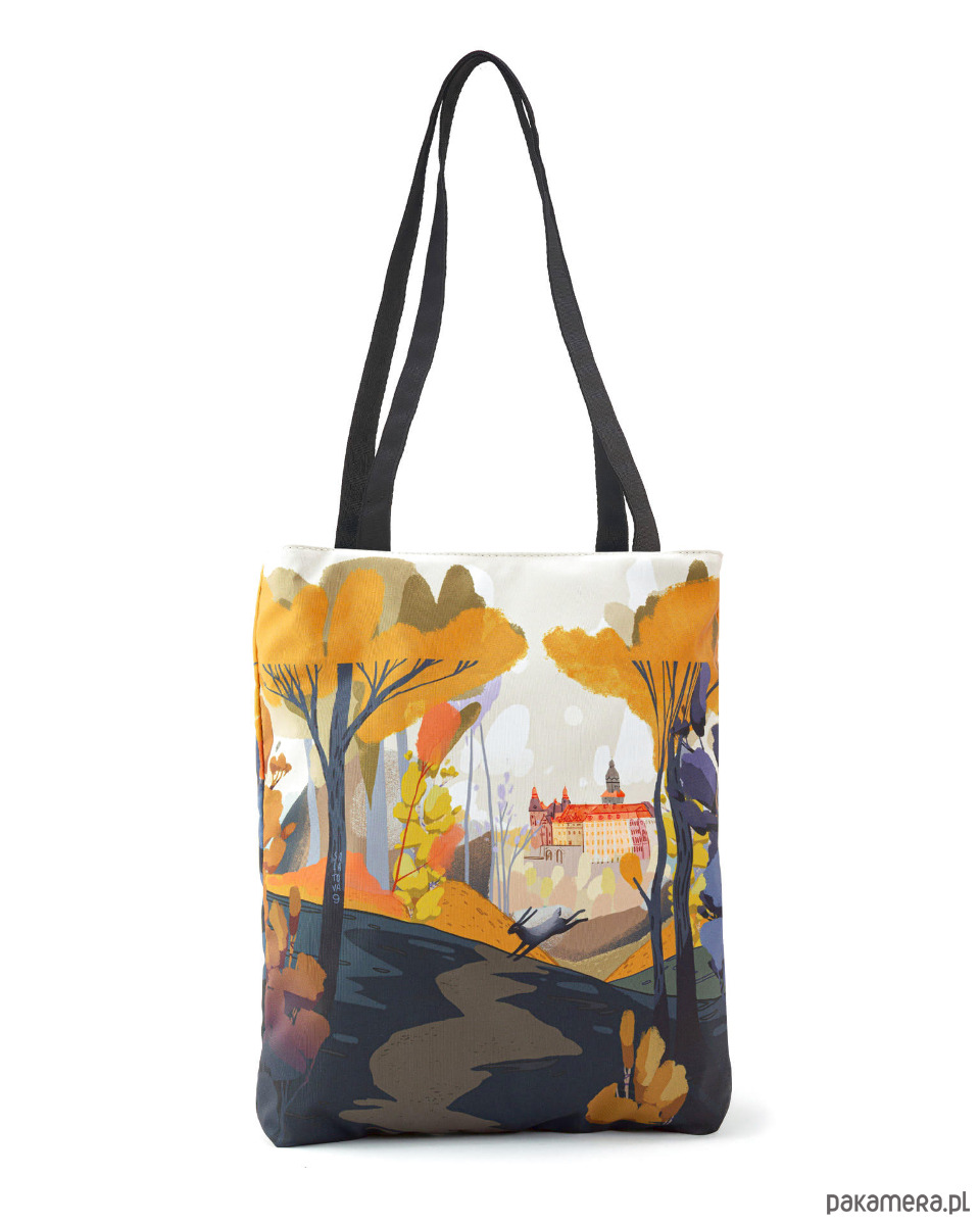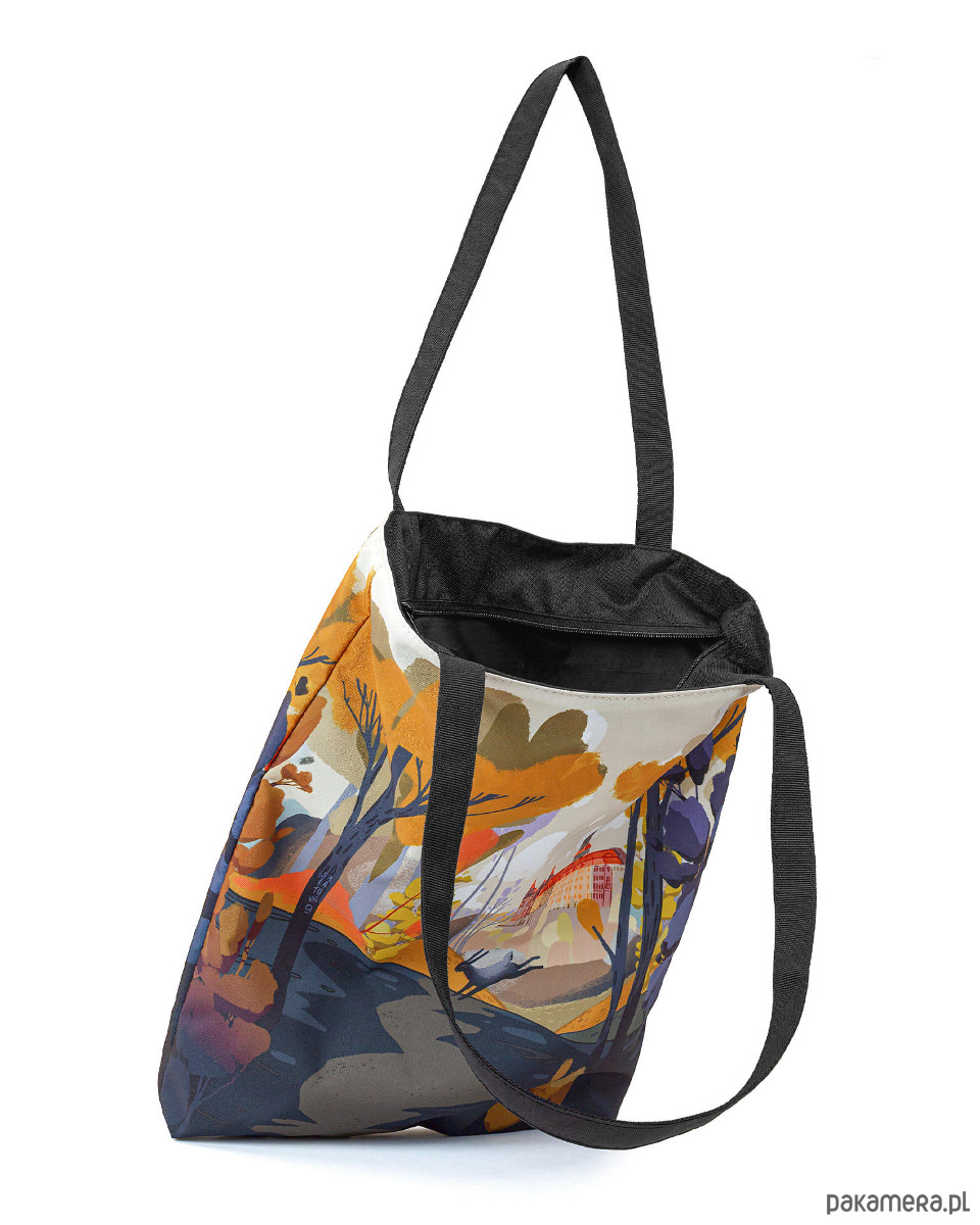 Wewnątrz znajduje się kieszeń zapinana na zamek, rączki wzmocnione paskiem.