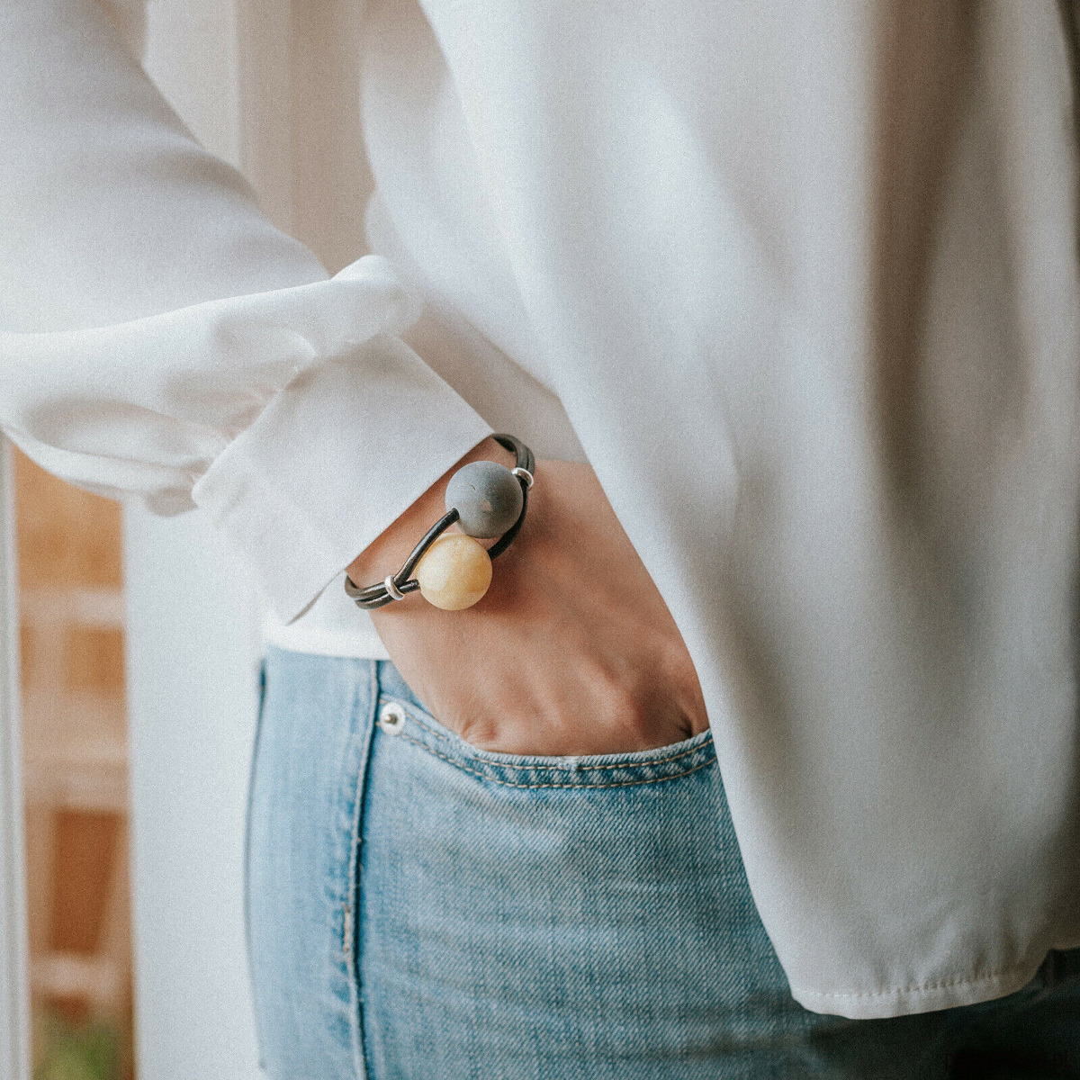 Nowoczesna bransoleta z bursztynu bałtyckiego