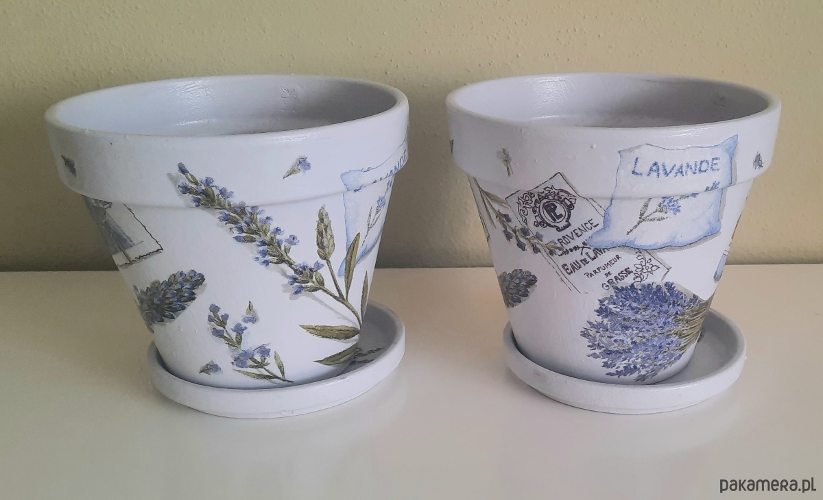 2 doniczki z motywem lawendowym specjalnie dla Pani Barbary.