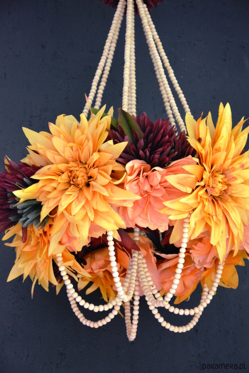2 sztuki pająków kwietnych w kolorze różowym. Konstrukcja oparta na drewnianych kulkach tworzy delikatną i oryginalną dekorację do każdego wnętrza.
