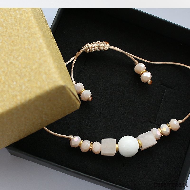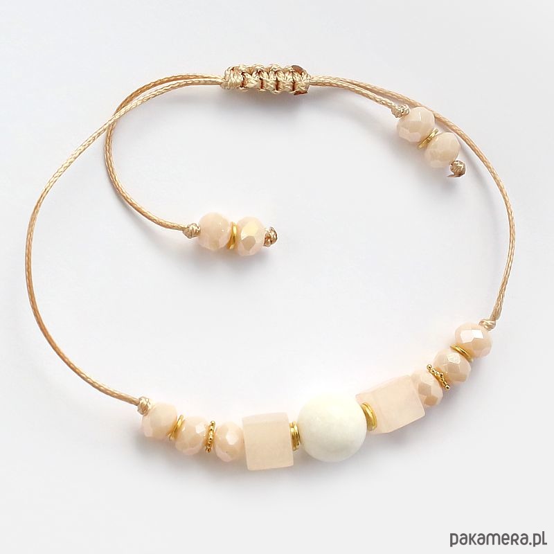 Rodzaj produktu: bransoletka shamballa z regulacją na woskowanym złotym sznurku