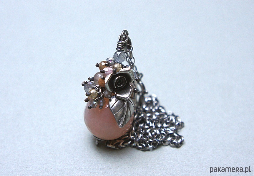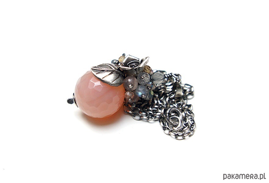 Naszyjnik wykonany ze srebra [pr.925] w połączeniu z fasetowaną kulą agatu [16mm] , fasetowanymi kuleczkami labradorytów [4mm], fasetowanymi kuleczkami rodonitów [3mm], fasetowanymi kwarcami dymnymi mystic [2mm] ,cyrkoniami [3mm] ,kuleczkami marmuru [4mm] oraz kwiatuszkiem . Srebro oksydowane i przetarte. Całkowita długość naszyjnika 61cm. Biżuteria ozdobnie zapakowana.