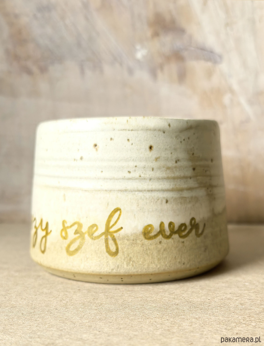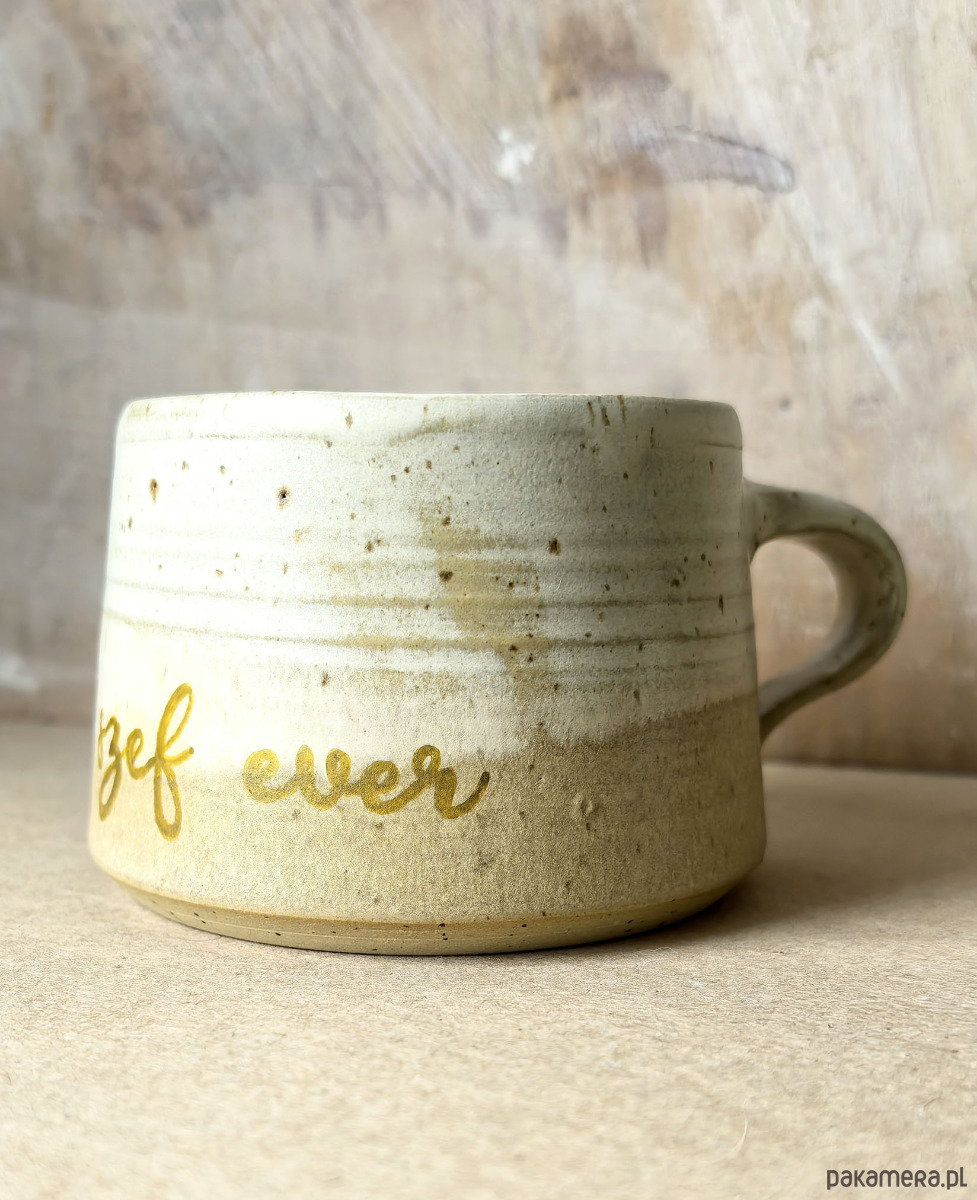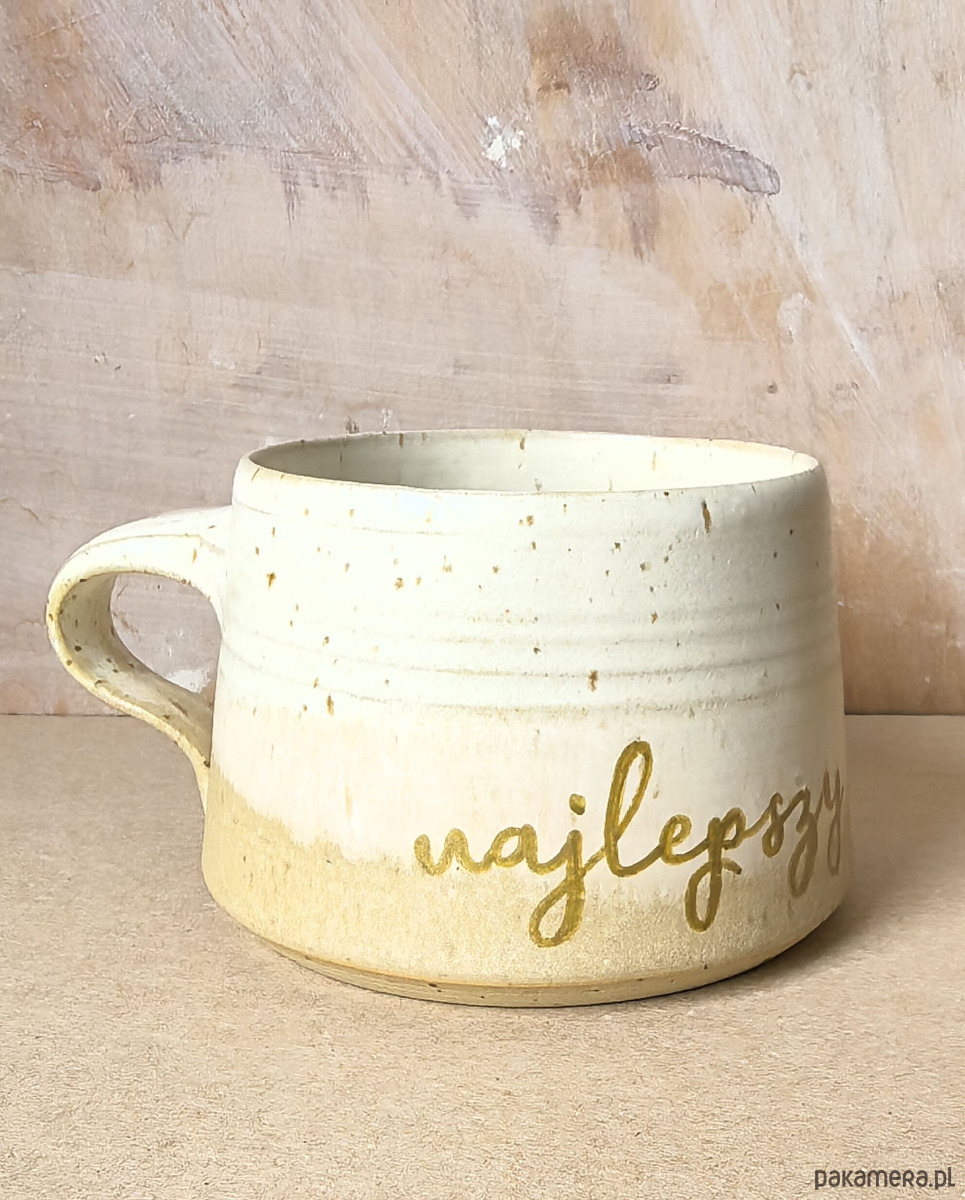 Wyjątkowy kubek ceramiczny, wytoczony na kole garncarskim z jasnej, nakrapianej gliny. Pokryty szkliwami w kolorze piasku i ciepłej bieli. Podwójny wypał w wysokiej temperaturze zapewnia trwałość i odporność na codzienne użytkowanie. Ergonomiczny uchwyt sprawia, że kubek przyjemnie leży w dłoni, zapewniając wygodę użytkowania.