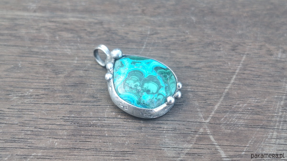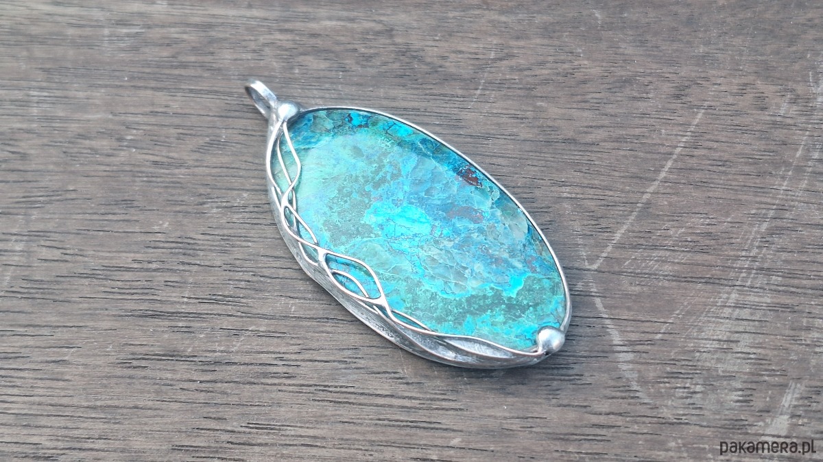 Chryzokola to rzadki, uwodniony krzemian miedzi o intensywnej niebiesko-zielonej barwie, często mylony z turkusem. Jest to miękki i kruchy minerał (twardość 2,5–3,5 w skali Mohsa), tworzący skupienia nerkowate i naloty w strefach utleniania złóż miedzi. Ceniona w jubilerstwie, uważana jest za kamień spokoju, komunikacji i kobiecej energii.