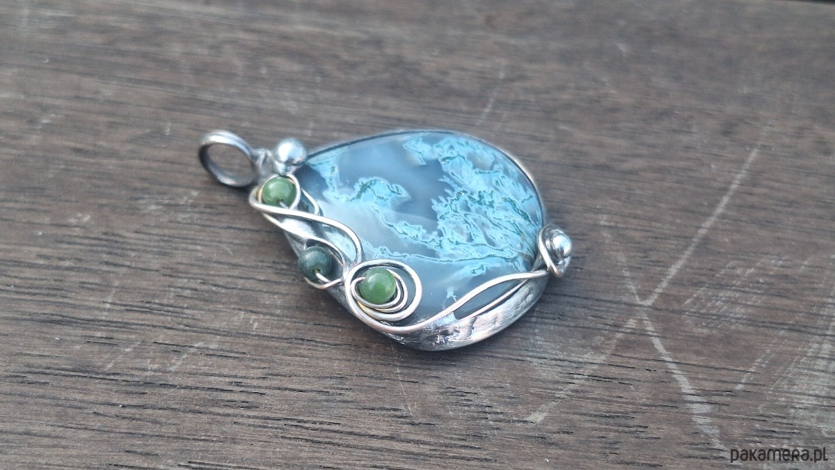 Agat mszysty to odmiana chalcedonu o jasnym tle z zielonymi, brązowymi lub czerwonymi inkluzjami chlorytu lub hornblendy, przypominającymi mech. Ten kamień naturalny (twardość 6,5–7 w skali Mohsa) jest ceniony w jubilerstwie i litoterapii jako talizman harmonii, równowagi emocjonalnej, bogactwa oraz głębokiego połączenia z naturą.
