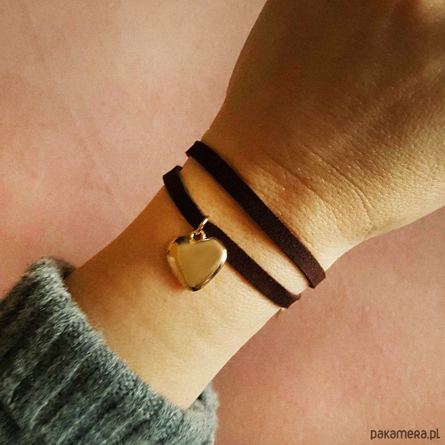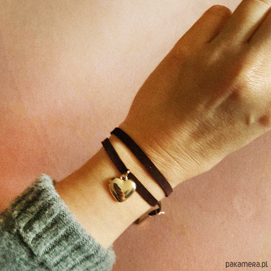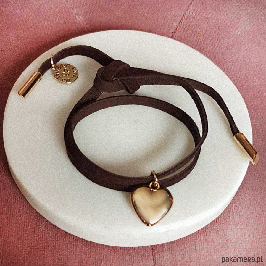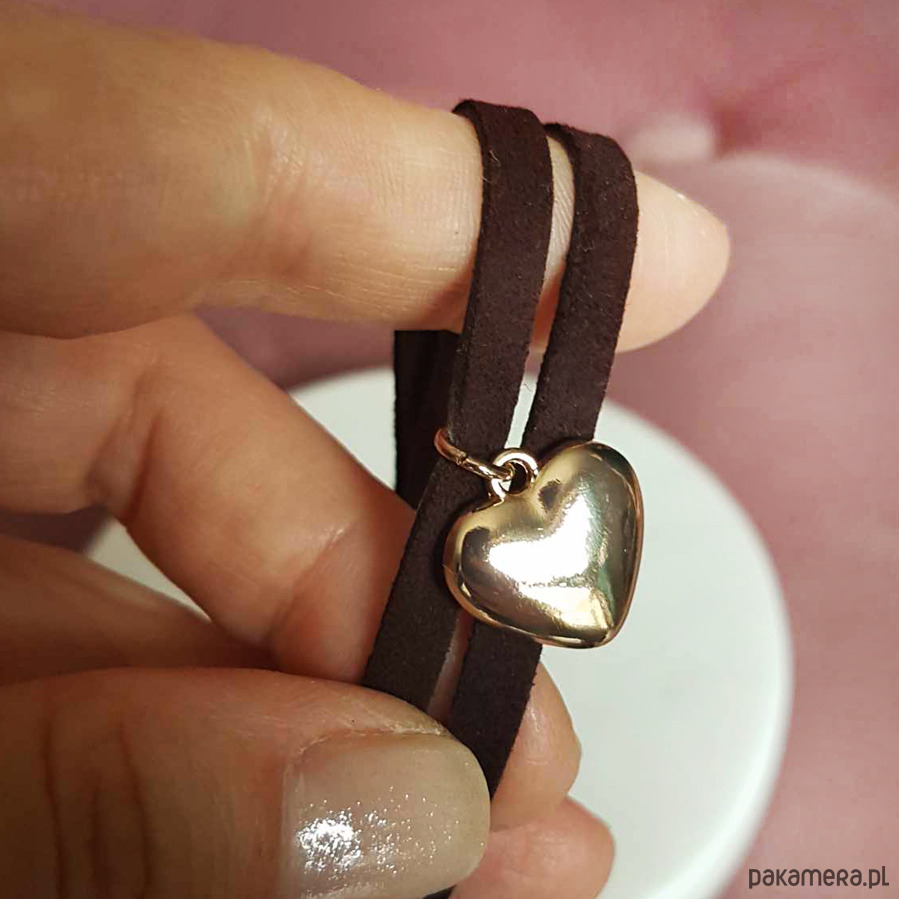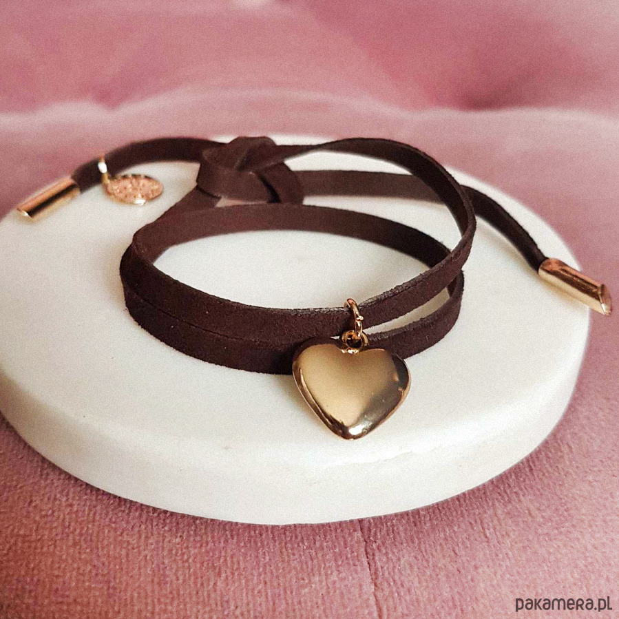 Zamszowa czekoladowa bransoletka serce