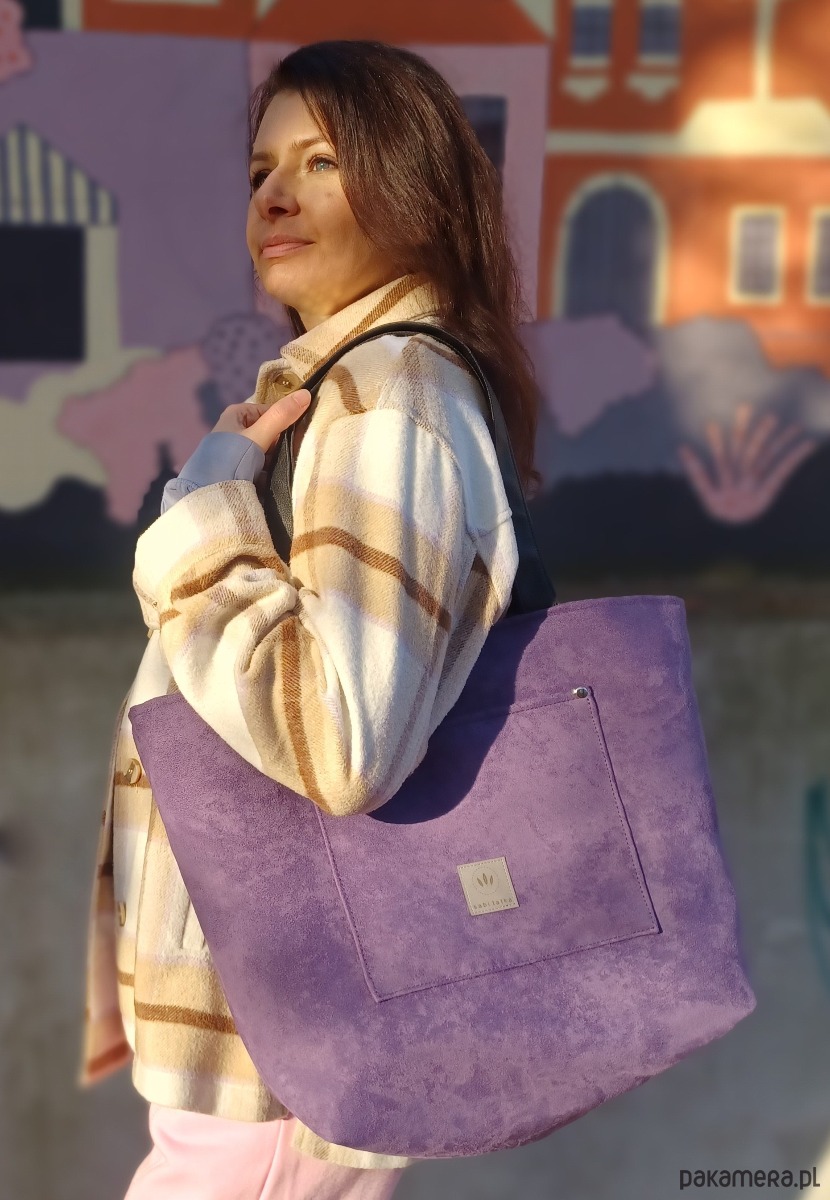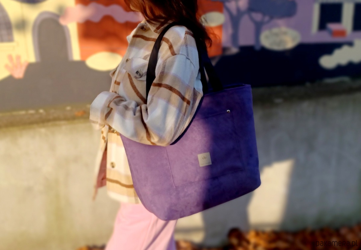 Starannie uszyta z zamszu ekologicznego w kolorze fioletowym.