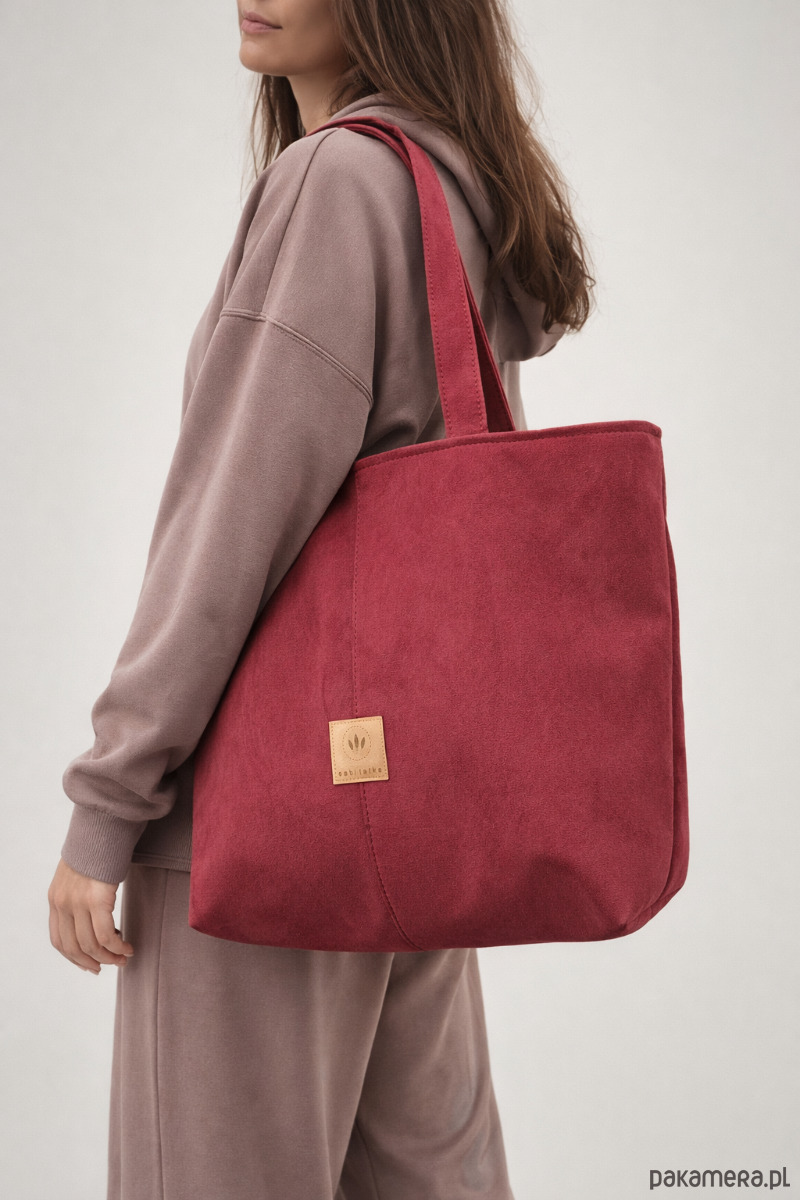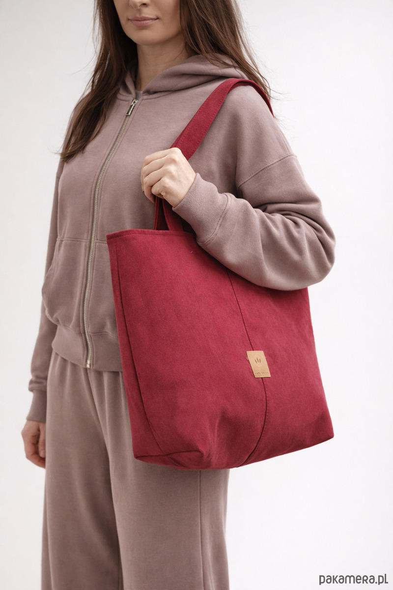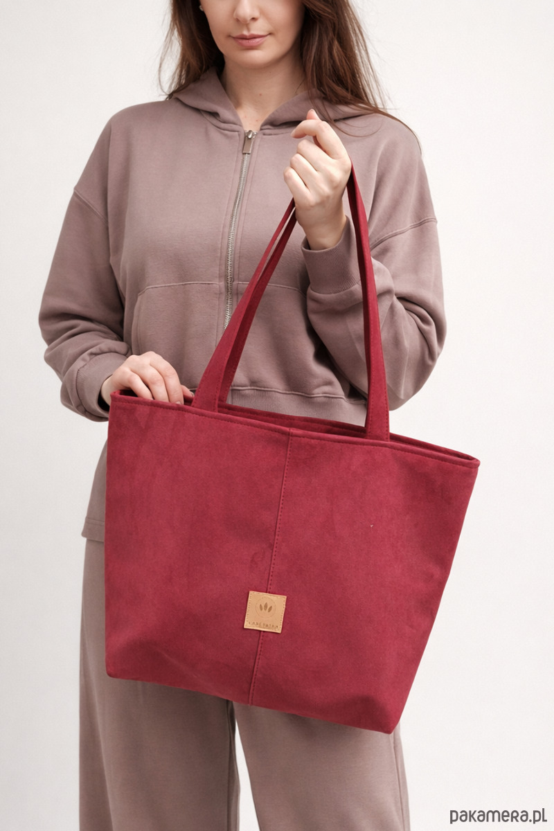 Zamszowa duża torba shopper Czerwona