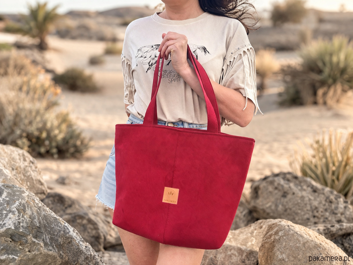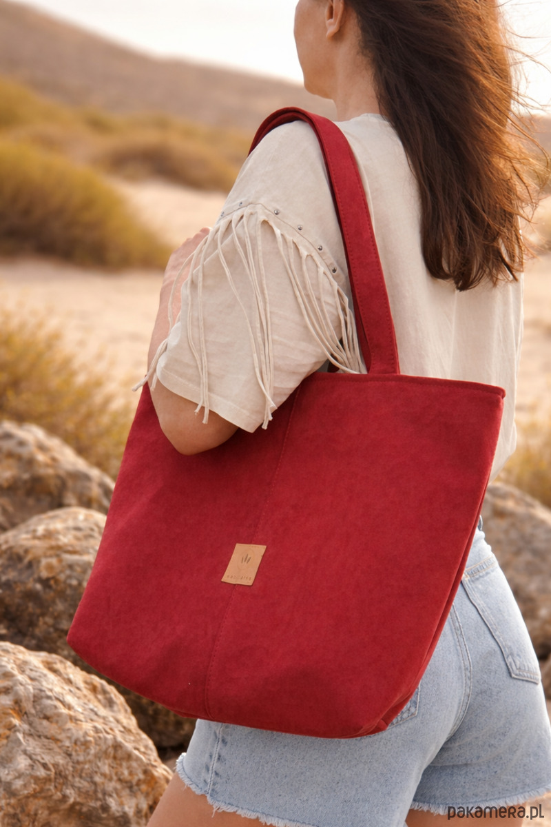 Zamszowa duża torba shopper Czerwona