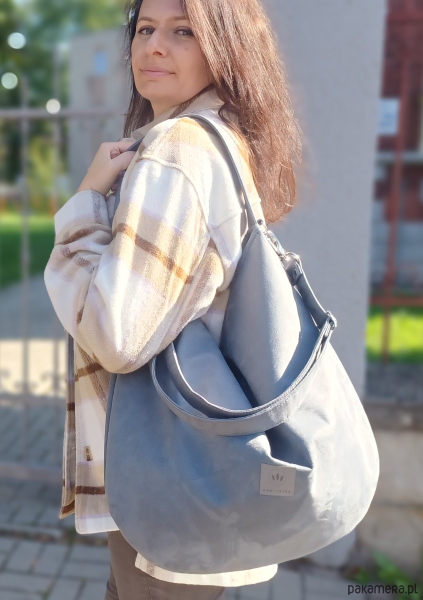 Zamszowa duża torba worek Szara