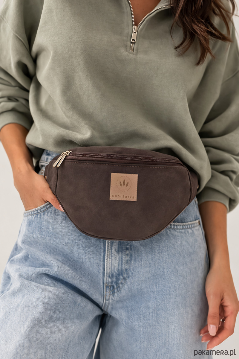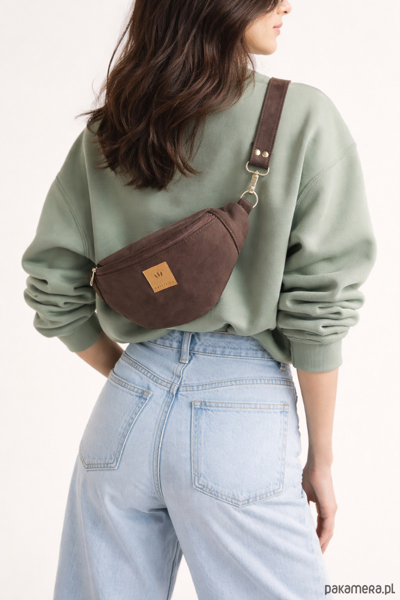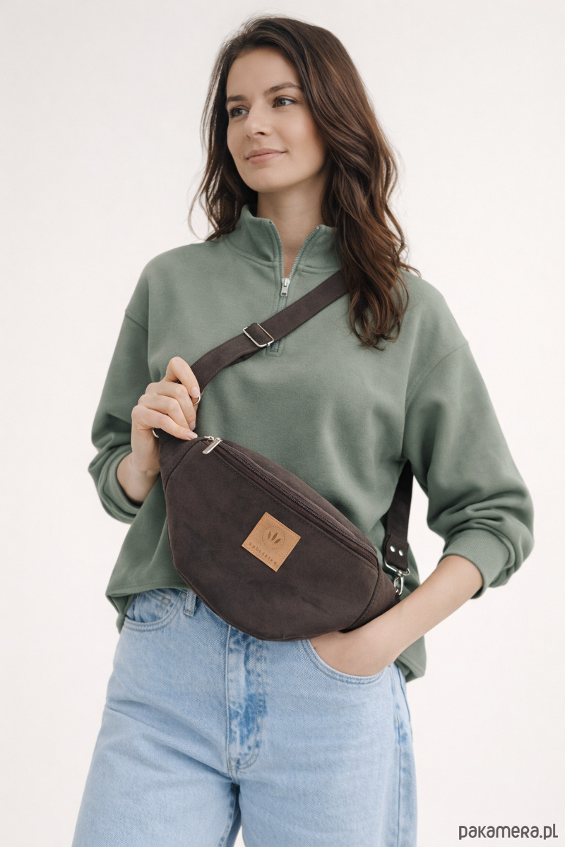 Nerka torebka damska z grubego, wodoodpornego nubuku w kolorze ciemnego brązu