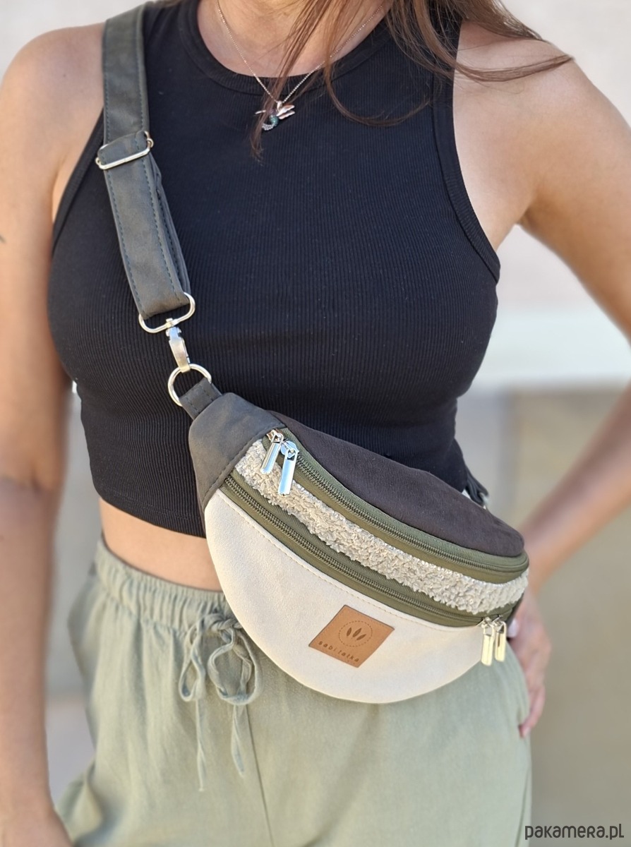 Zamszowa nerka basic Kremowo-Szałwiowa