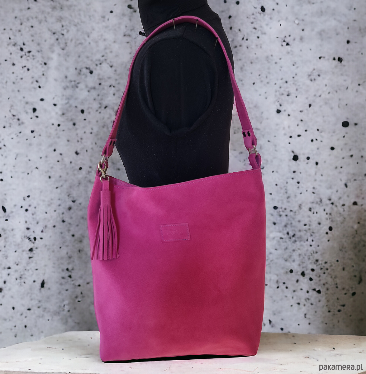 Zamszowa torba Shopper Bag, fuksja. Duża torebka na ramię skóra zamszowa