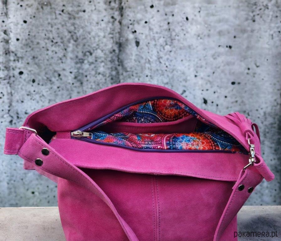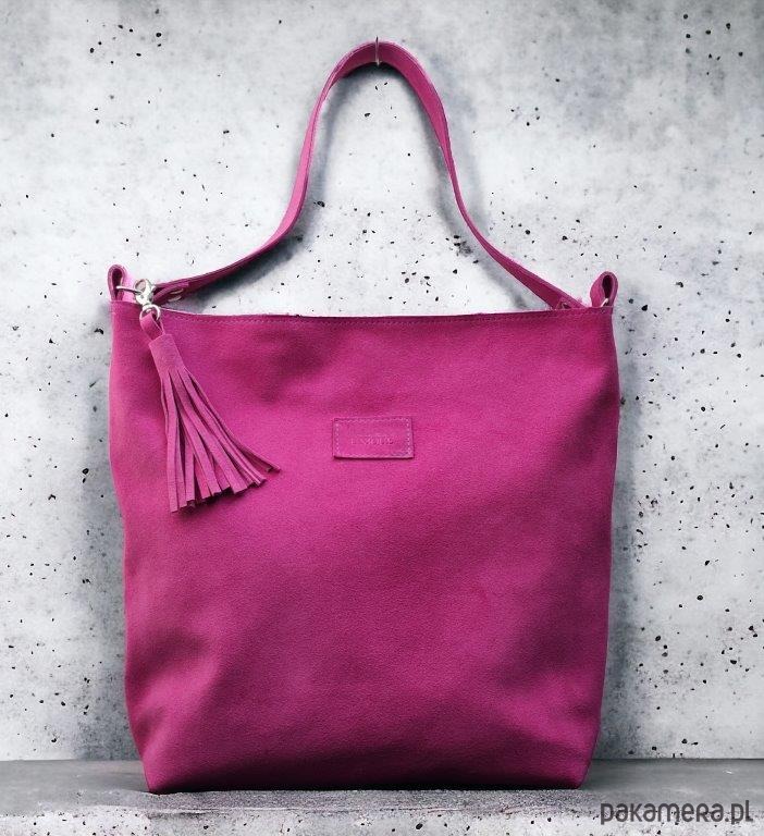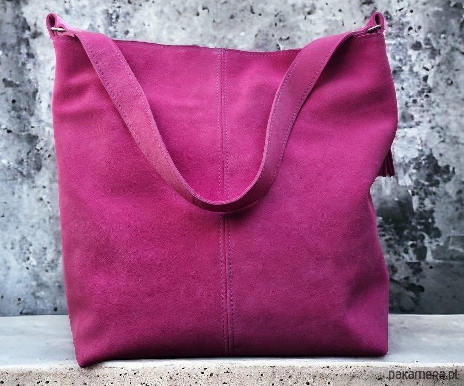Zamszowa torba Shopper Bag, fuksja. Duża torebka na ramię skóra zamszowa