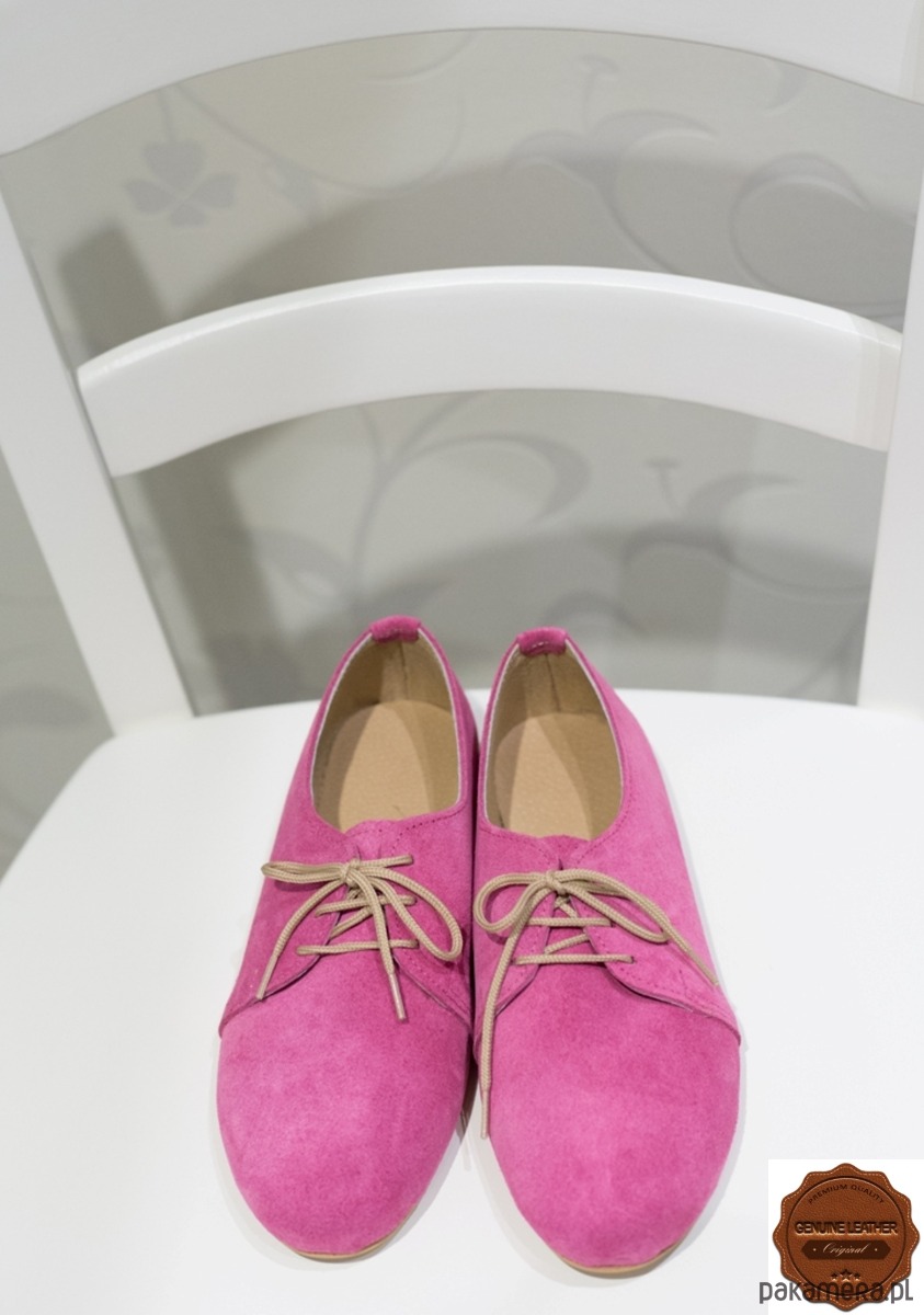 Ręcznie robione zamszowe buty typu Oxford w kolorze fuksji.