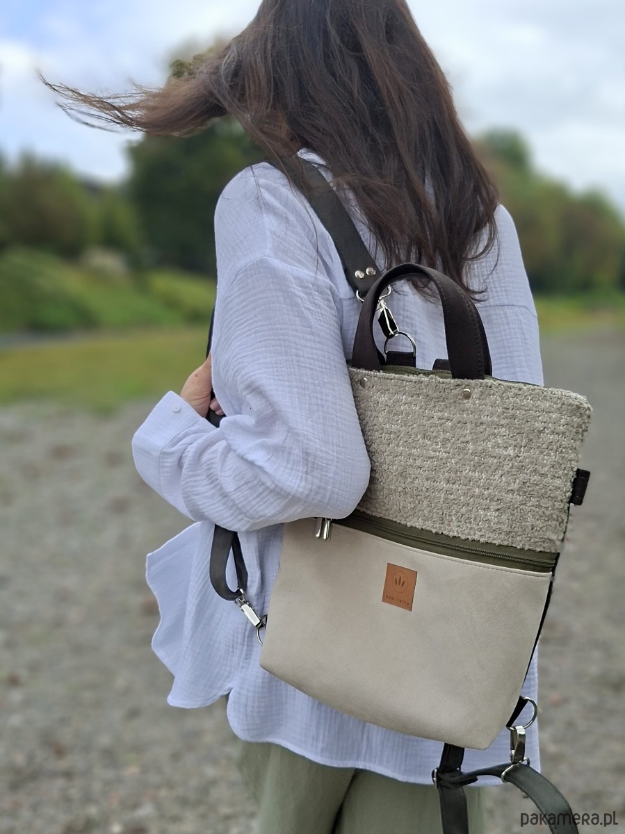 Zamszowy plecak 2w1 Kremowo-Szałwiowy