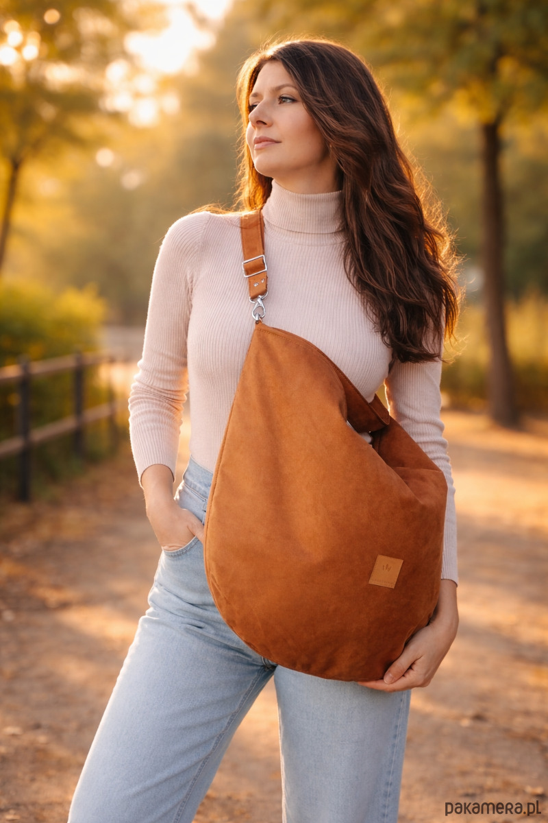 Zamszowy worek hobo Brązowy