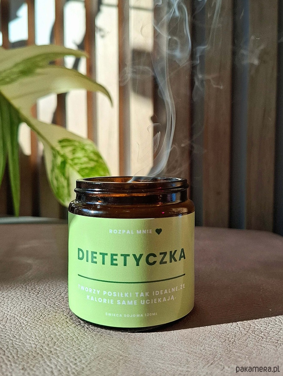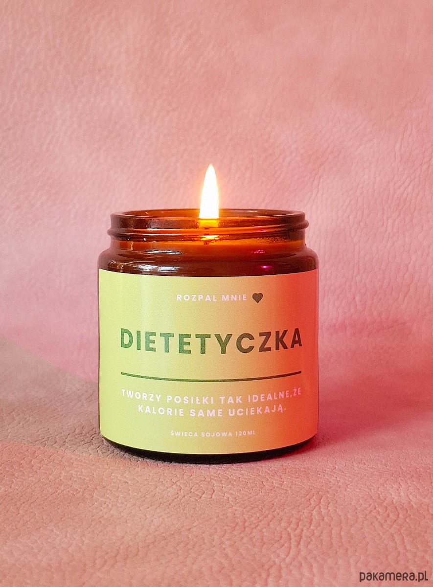 Świeca sojowa Dietetyczka - stworzona z myślą o kobietach, które na co dzień inspirują innych do dbania o zdrowie, ta ręcznie wykonana świeca wprowadza do wnętrza chwilę spokoju i harmonii. Jej ciepłe światło oraz zapach pomagają wyciszyć się po intensywnym dniu pracy i stworzyć w domu przyjemną atmosferę relaksu.