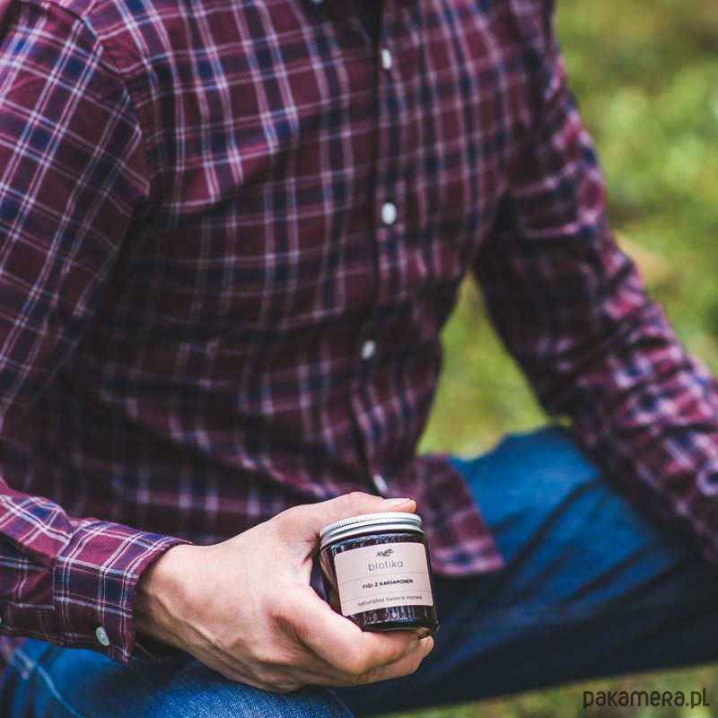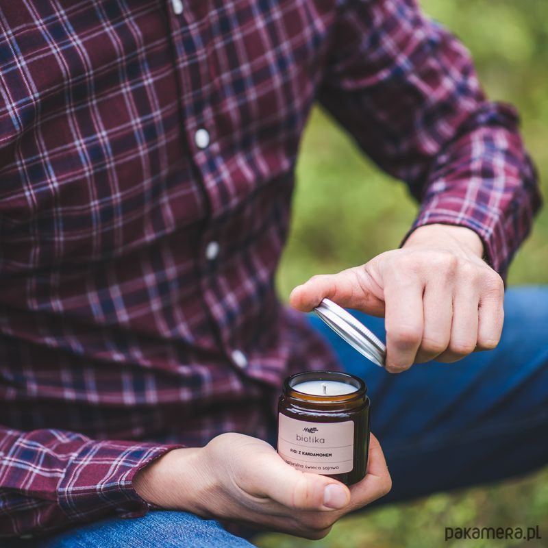 ŚWIECA SOJOWA FIGI Z KARDAMONEM - Rozgrzewający aromat kardamonu łączy się tutaj ze słodką figą i szczyptą czarnego pieprzu. To zapach idealnie pasujący do męskich pomieszczeń lub dla sympatyków zdecydowanych nut zapachowych.
