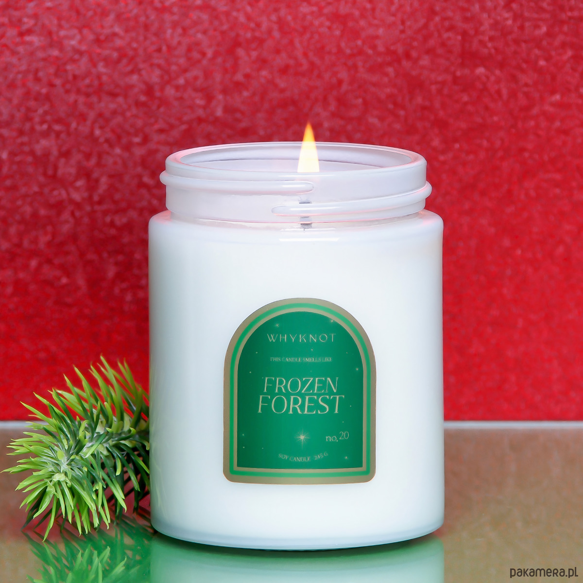 Zamknięta w pięknym słoiku WHY KNOT CANDLES ze złotą przykrywką w komplecie, świeca sojowa FROZEN FOREST sprawi, że każdy Twój zimowy wieczór będzie przytulniejszy niż zawsze.