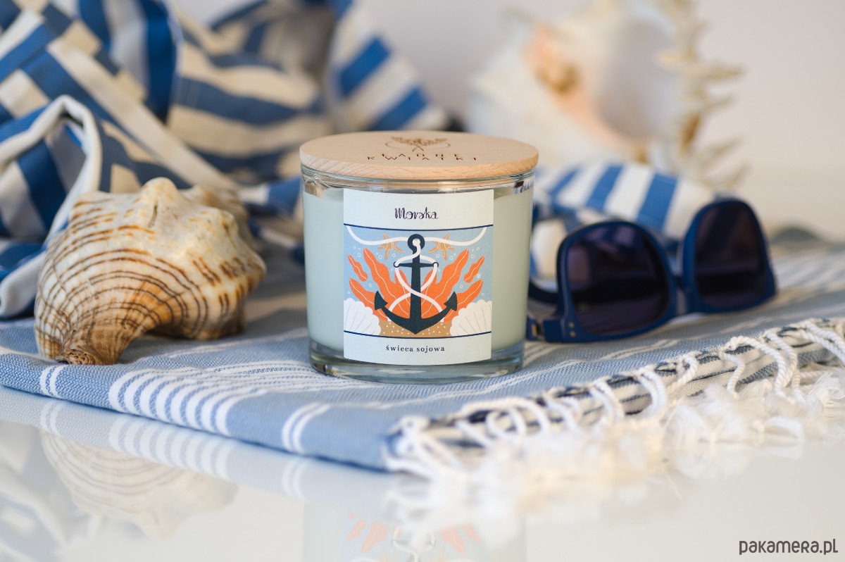Bazę stanowią tu przyjemnie słona sól morska i esencjonalne drzewne akordy, wzmocnione przez ciepły bursztyn, paczulę i piżmo. Lekkości nadają kwiatowe nuty - lilii wodnej i cyklamenu. Specjalnie w tym wyjątkowym, letnim okresie, stworzyliśmy świecę, która przenosi nas na wymarzoną plażę, gdzie powiew morskiej bryzy i rozbijające się o skały fale, skłaniają do głębokich refleksji. Dotyk zachodzącego słońca, słone powietrze i miękki piasek pod stopami napełniają nową energią.