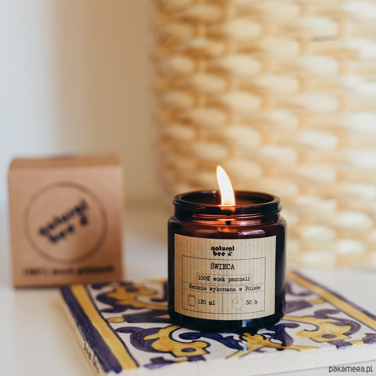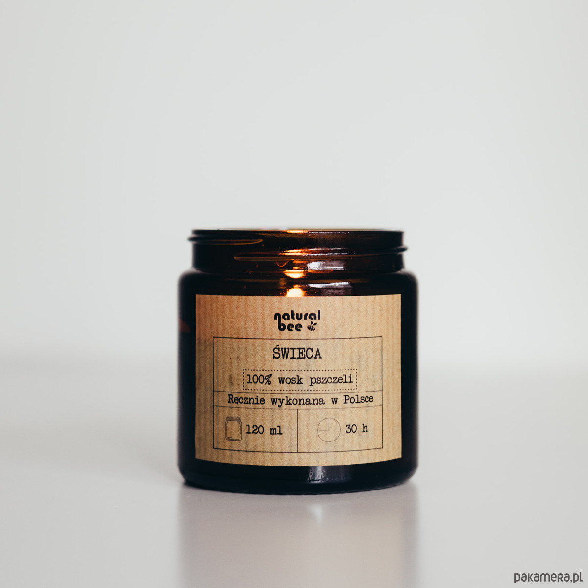 Dzięki zastosowaniu naturalnego wosku pszczelego świeca pali się jasnym ciepłym płomieniem, dając piękną poświatę. Świeca spala się bez dymu, wypełniając pomieszczenie przyjemnym, delikatny zapachem miodu i propolisu. Jej czas palenia jest znacznie dłuższy niż świec z parafiny czy stearyny. Wosk pszczeli podczas spalania nie emituje żadnych substancji szkodliwych dla zdrowia. Świeca nie zawiera olejków eterycznych i barwników.