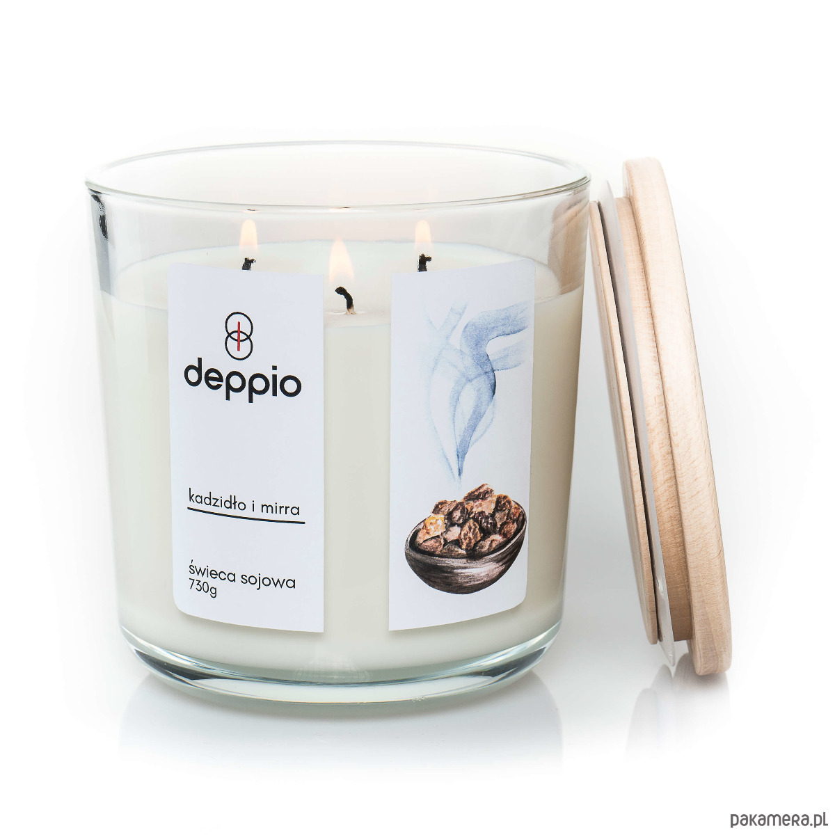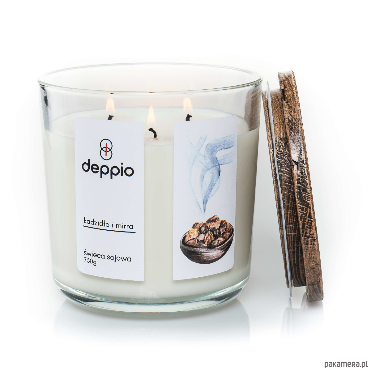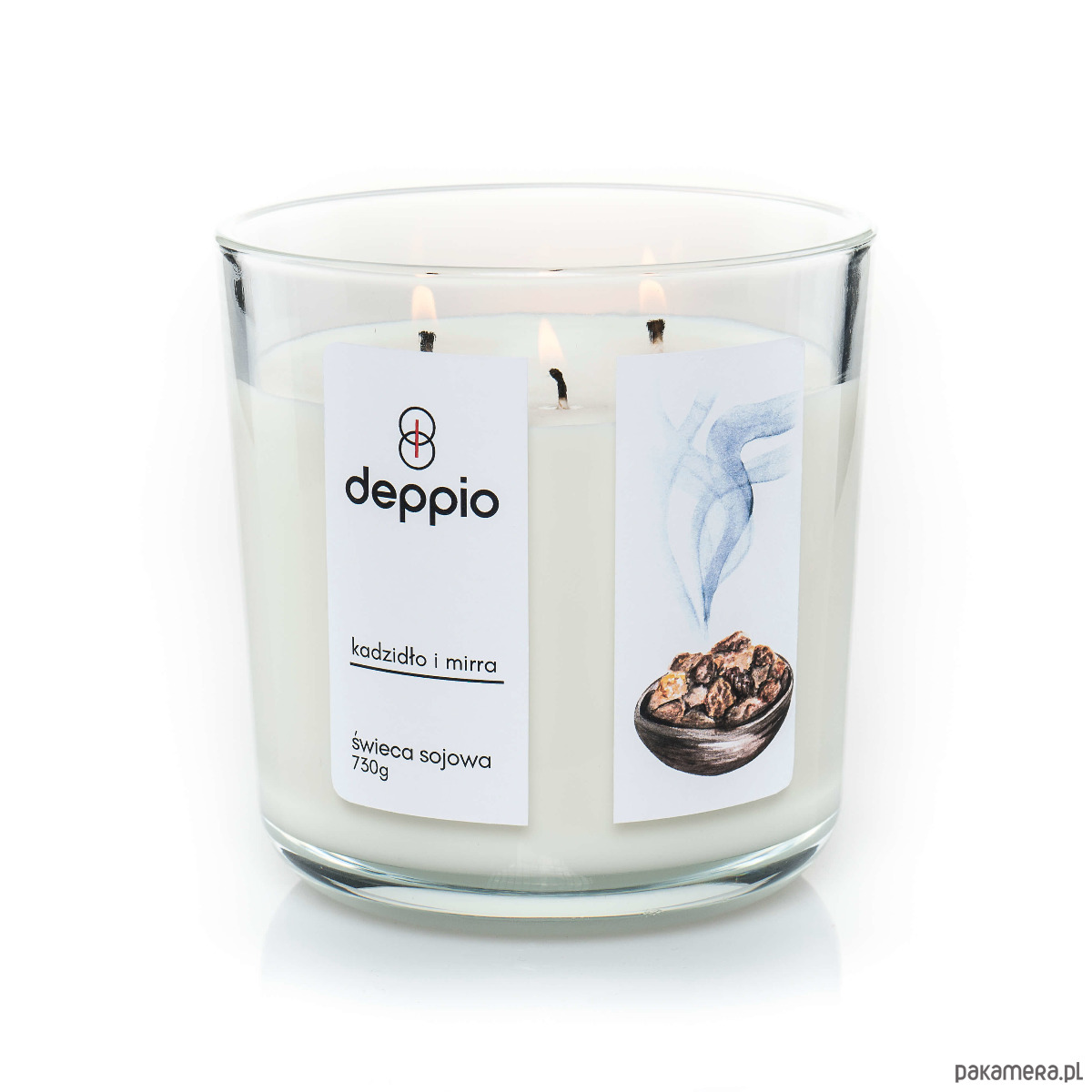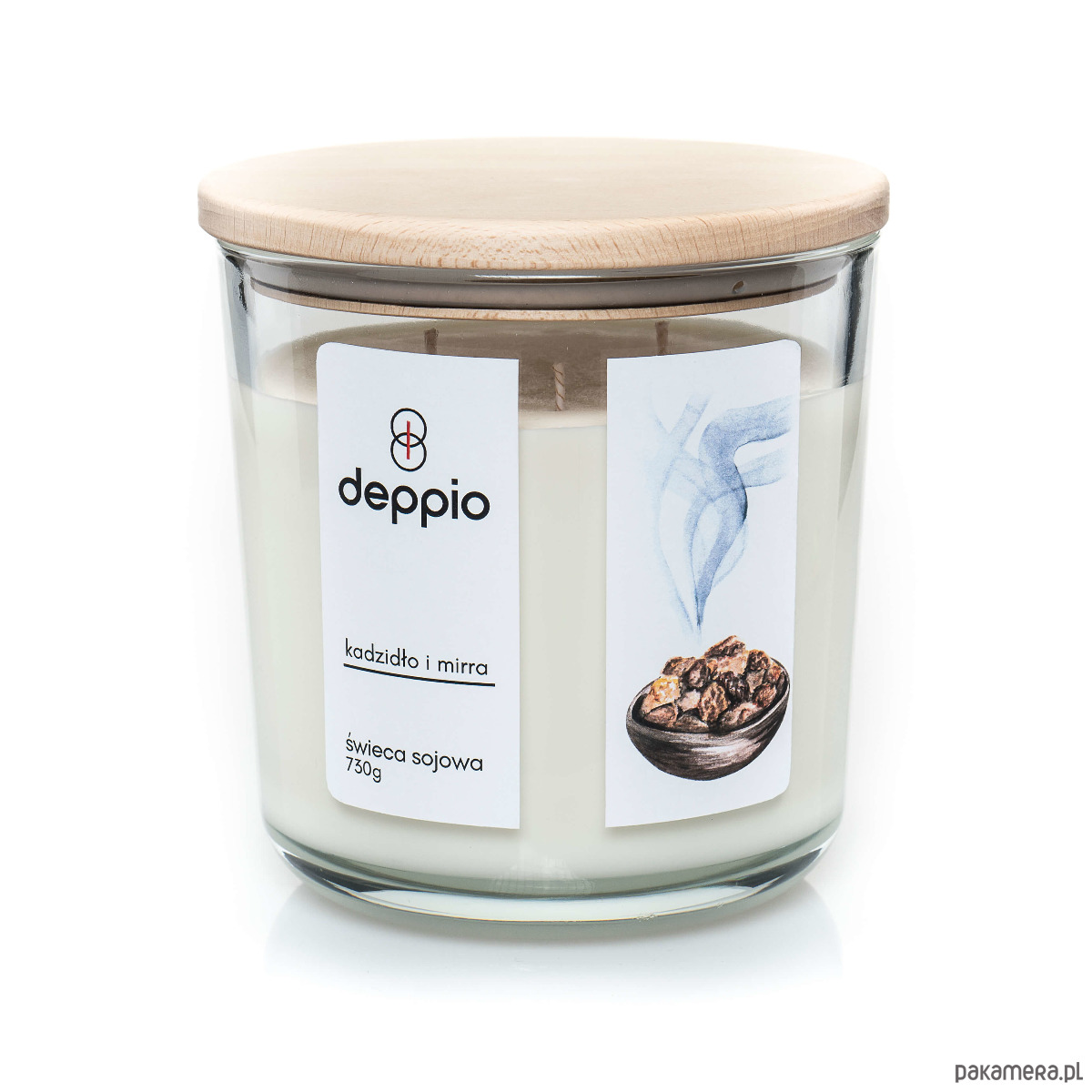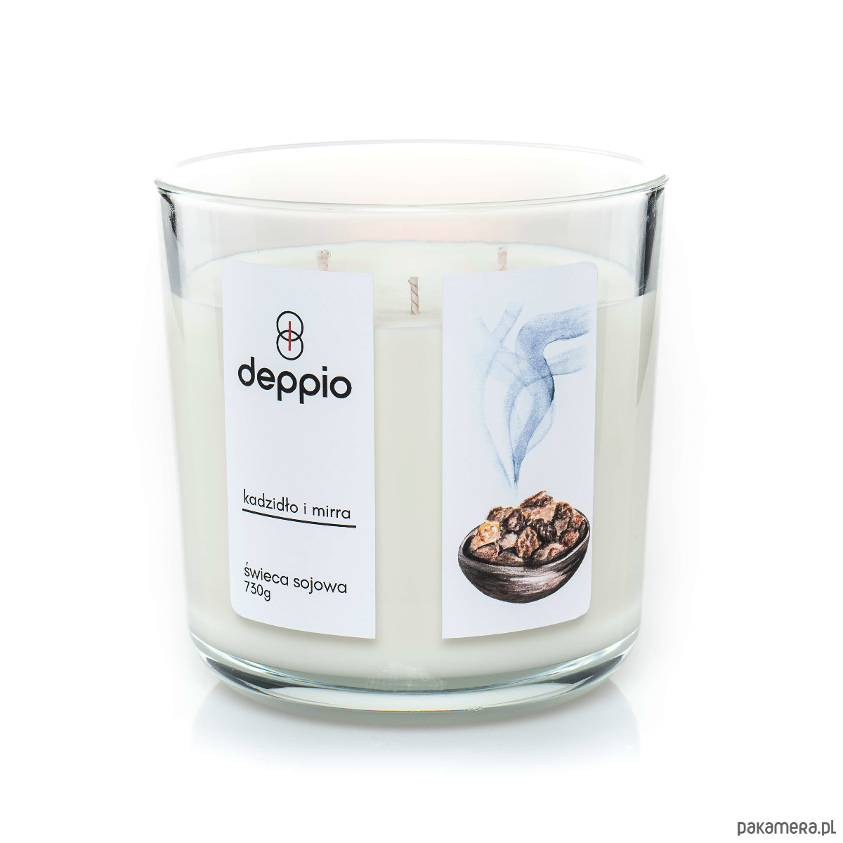 Świeca deppio o zapachu kadzidła i mirry dostępna jest również w rozmiarze 160g oraz 410g