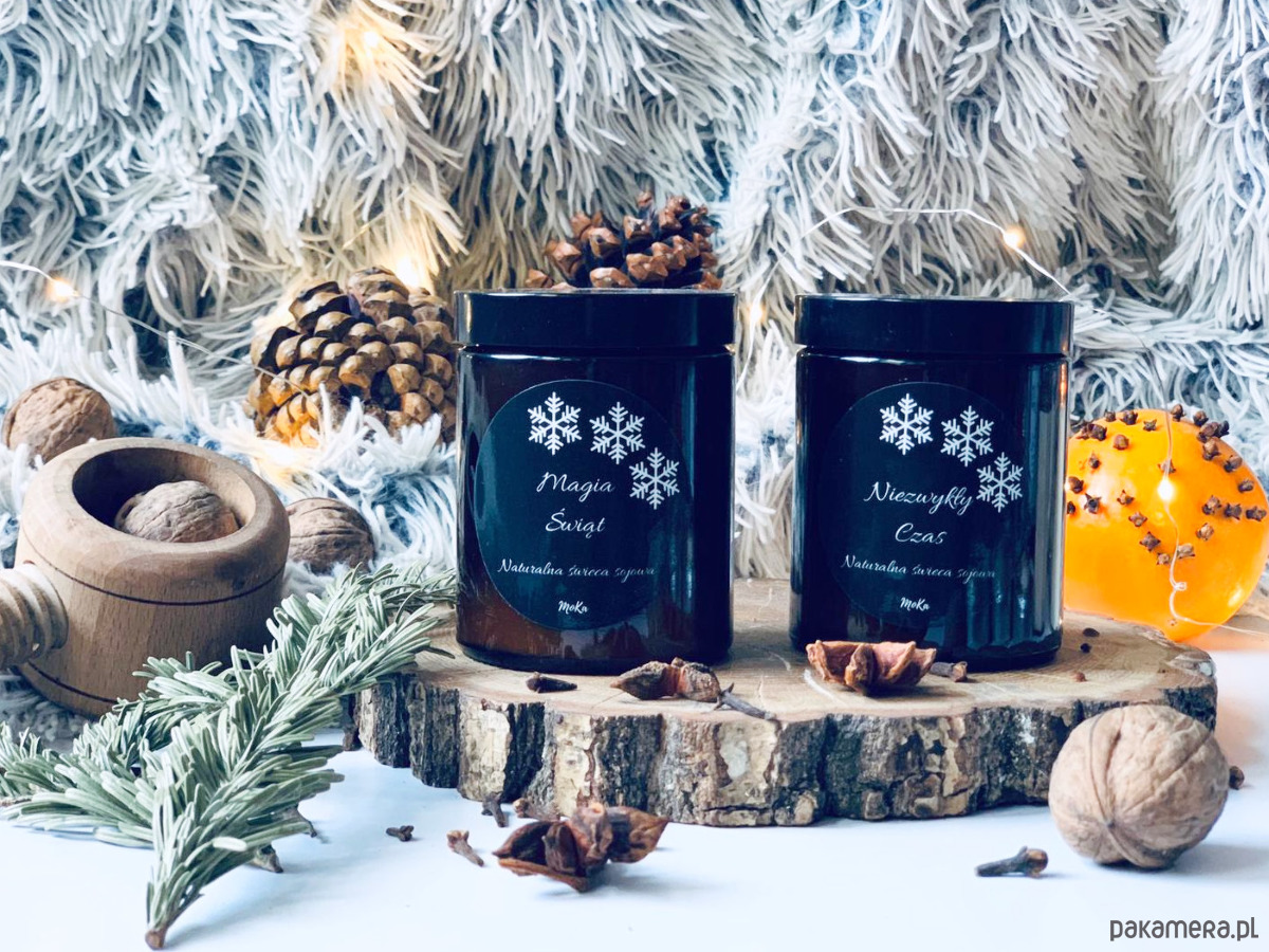 Magia Świąt i Niezwykły Czas to dwie świece sojowe wchodzące w skład świątecznego zestawu. Kompozycja i połączenie pełne radości, miłości i świątecznego ciepła.