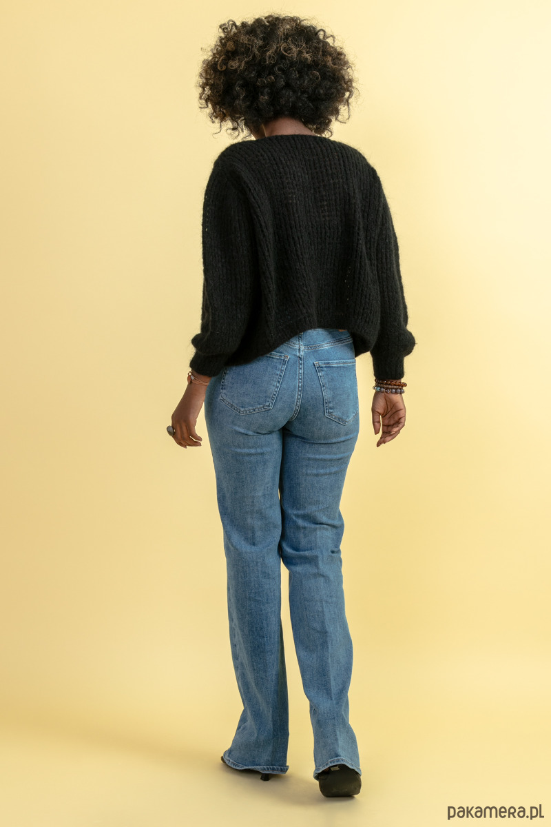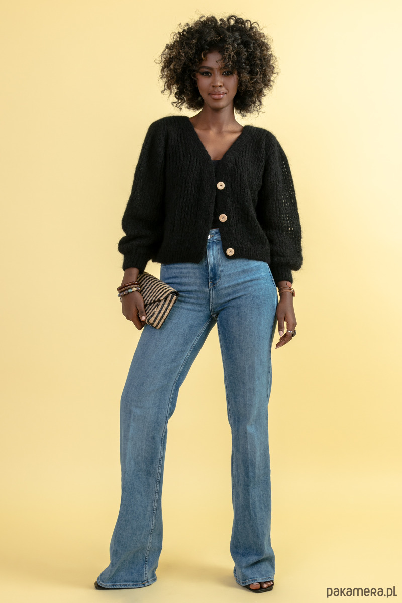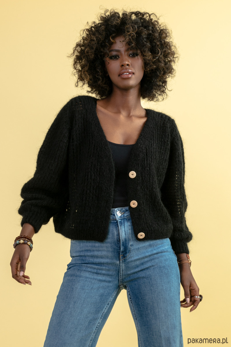 Zapinany krótki kardigan z wełny Merynosa w kolorze CZARNYM.