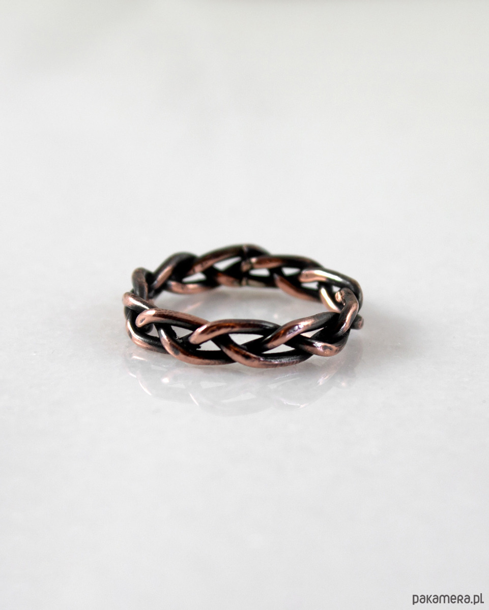 Zapleciona - rozm. 15 - miedziana obrączka (2209-02)