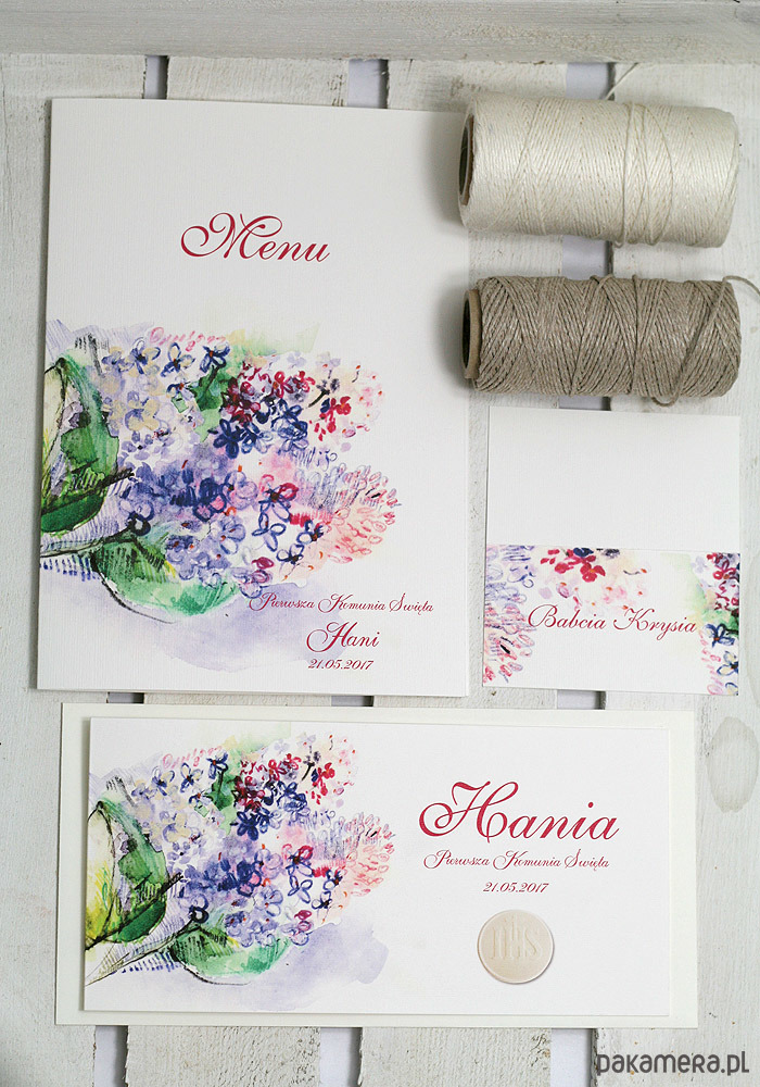ZAPROSZENIA NA KOMUNIĘ - wzór BEZ - zaproszenie akwarelowe, drukowane, personalizowane.Do każdej kolekcji możliwość wykonania menu, winietek, podziękowań - napisz w wiadomości ilość sztuk oraz imię dziecka a my wystawimy dla Państwa zamówienie.