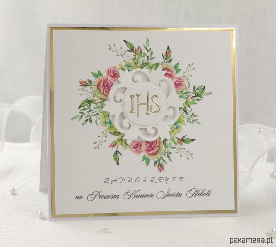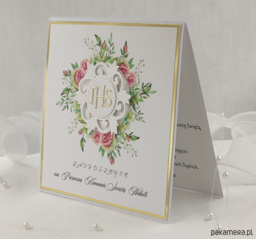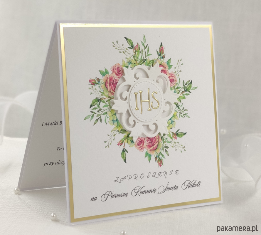 Eleganckie, ręcznie wykonane, personalizowane zaproszenie komunijne.
