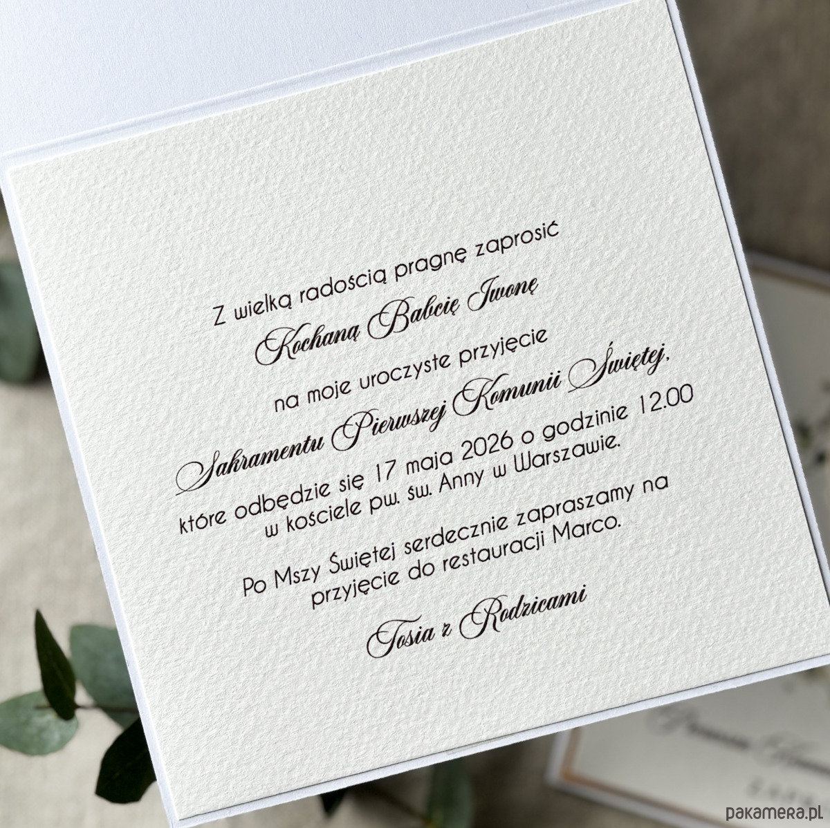 Eleganckie, ręcznie robione, personalizowane zaproszenia na komunię.
