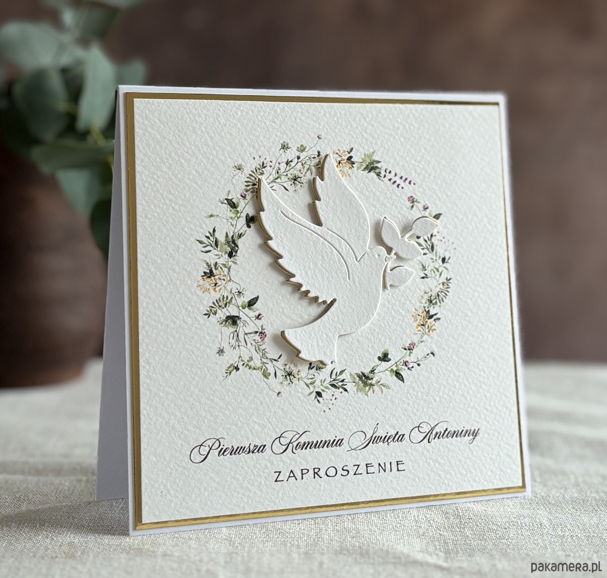 Eleganckie, ręcznie robione, personalizowane zaproszenia komunijne.