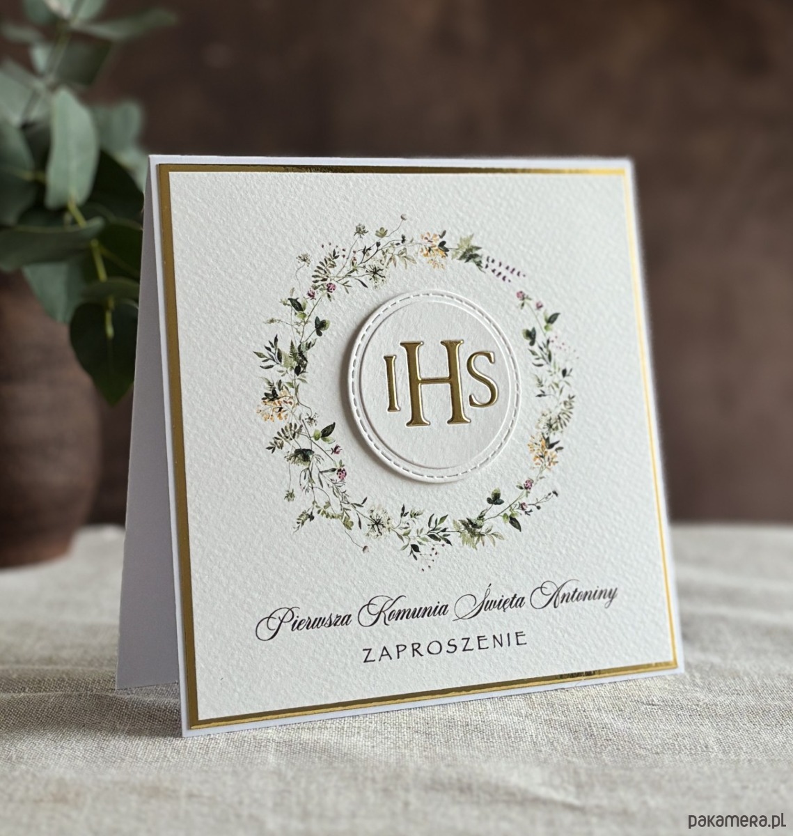 Eleganckie, ręcznie robione, personalizowane zaproszenia na komunię.