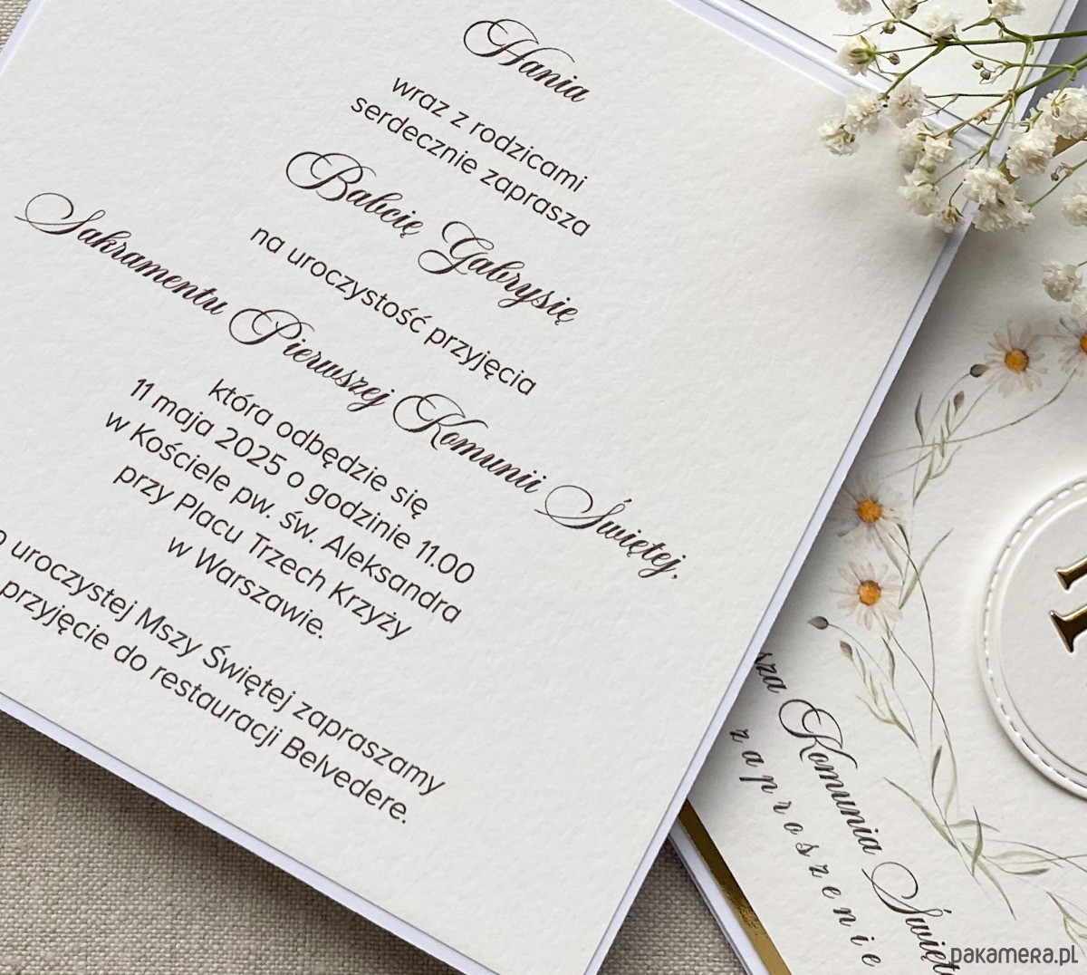 Delikatne i subtelne, ręcznie robione, personalizowane zaproszenia komunijne.