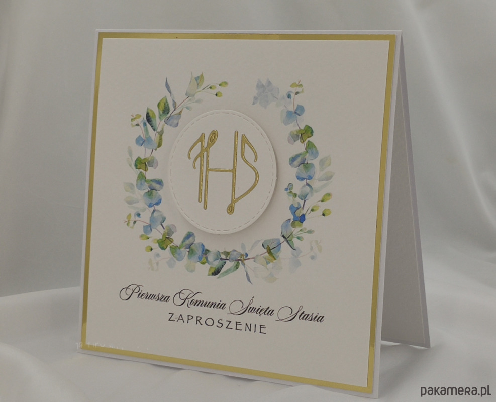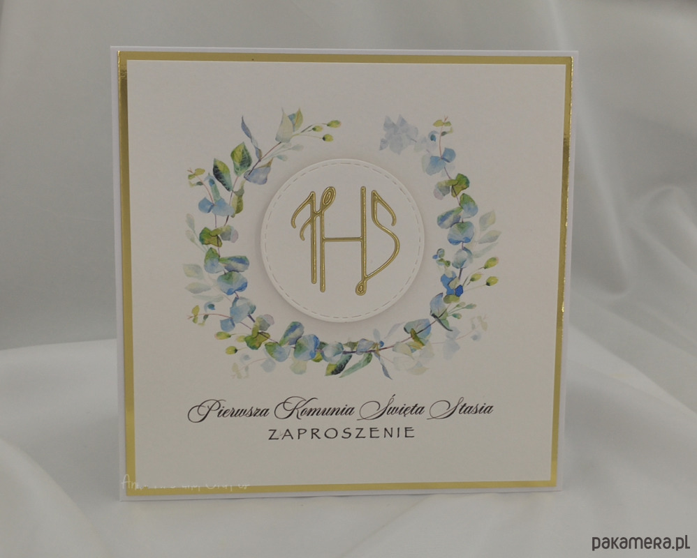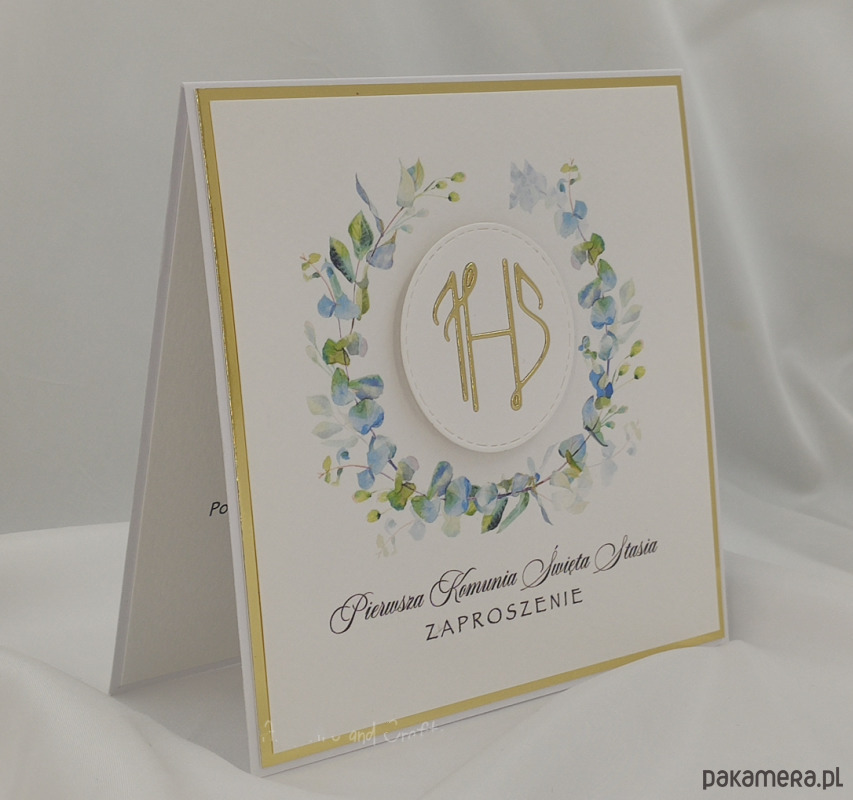 Delikatne i subtelne, ręcznie wykonane zaproszenia komunijne z pełną personalizacją.